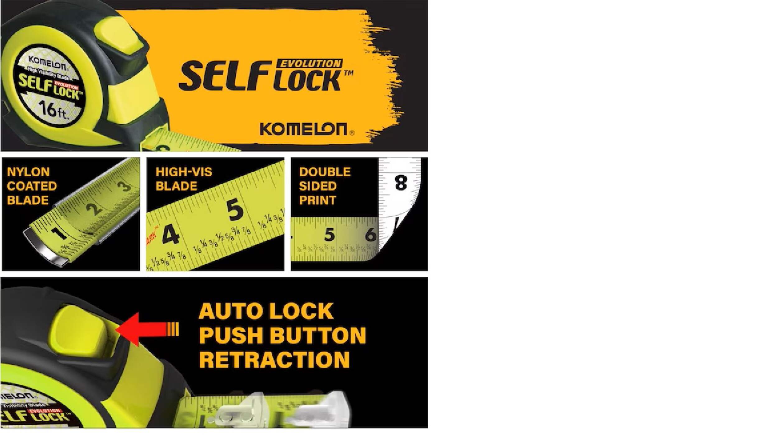 The Komelon Self-Locking Measuring Tape has a self-locking feature that allows you to take measurements by yourself without a second person. The tape retracts smoothly at the push of a button, and the rubberized case ensures a comfortable grip and durability. This measuring tape is perfect for professional contractors, providing precise and accurate measurements effortlessly.