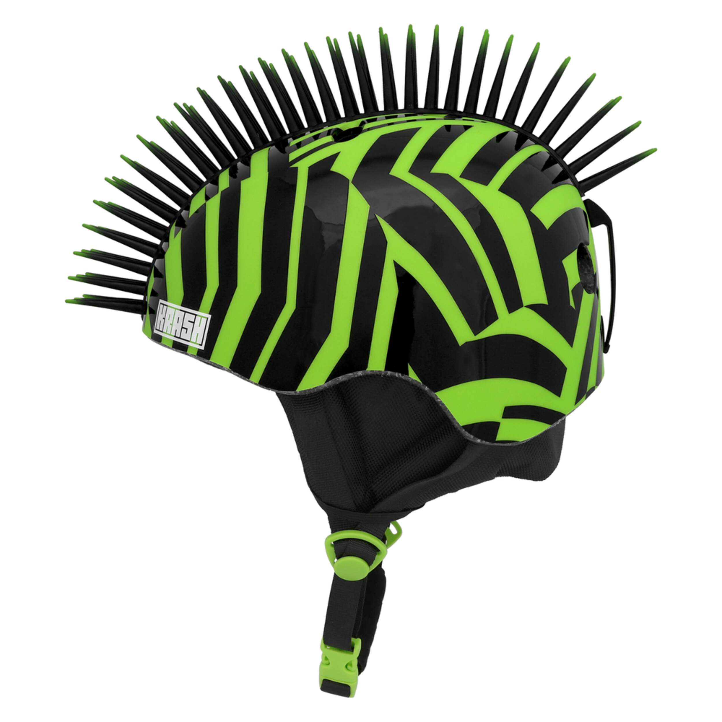 Krash 3D Dazzle Youth Snow Helmet features a green mohawk