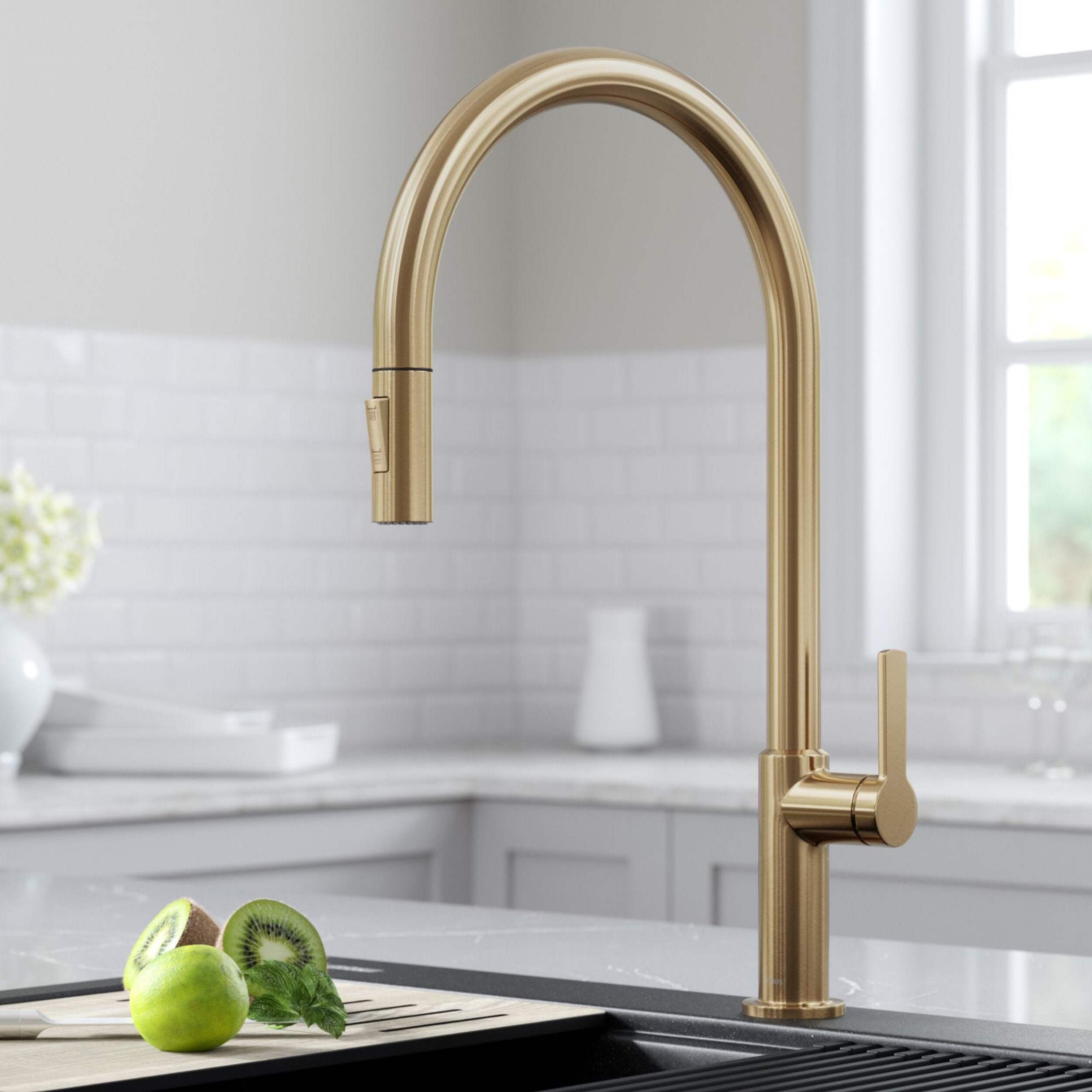 Extra-tall high-arc spout instantly elevates the style of any type of kitchen sink