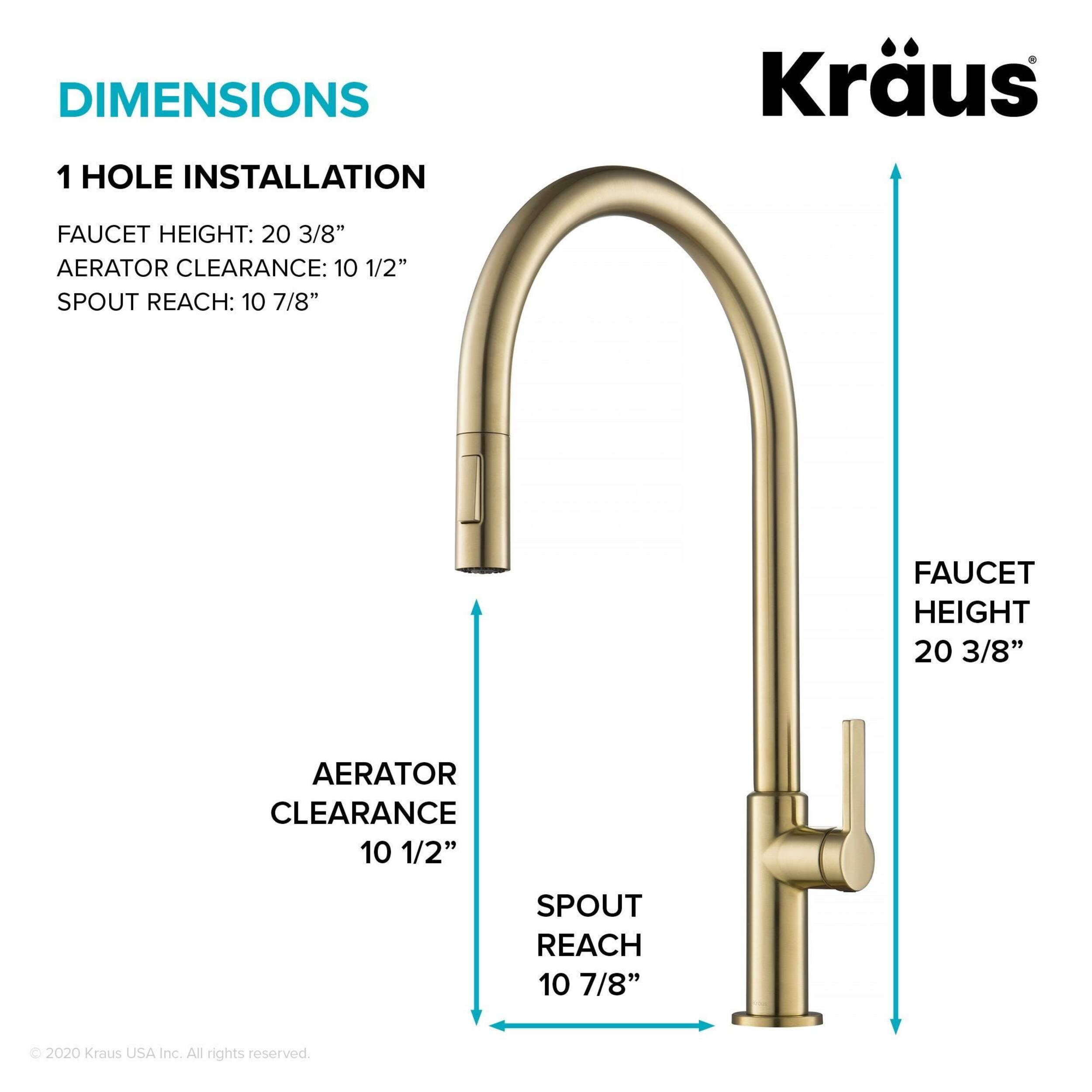 Dimensions: Faucet Height: 20 3/8" (51.7 cm), Spout Height: 10 1/2" (26.6 cm), Spout Reach: 10 7/8" (27.6 cm)