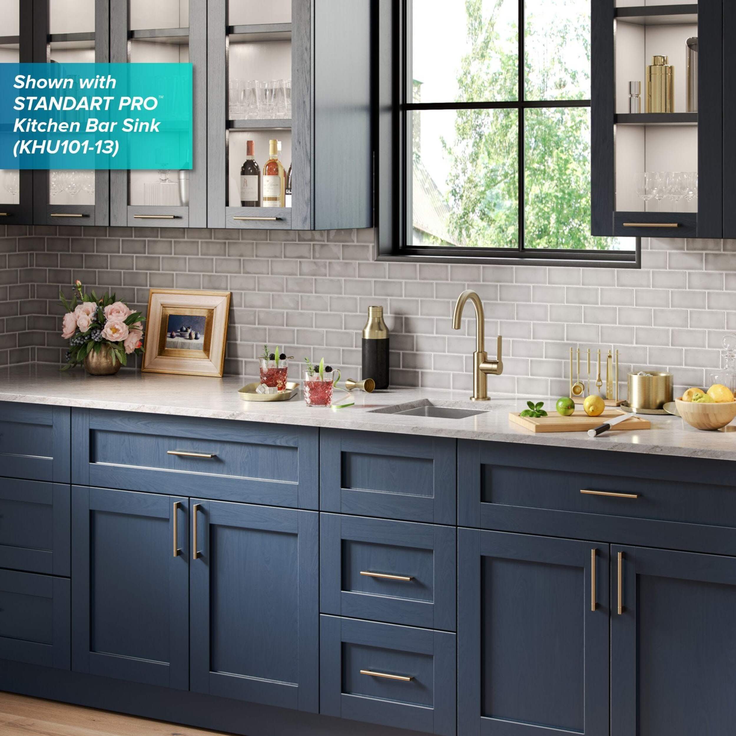 Streamlined gooseneck spout makes a stylish focal point for any bar, prep, or entertainment area