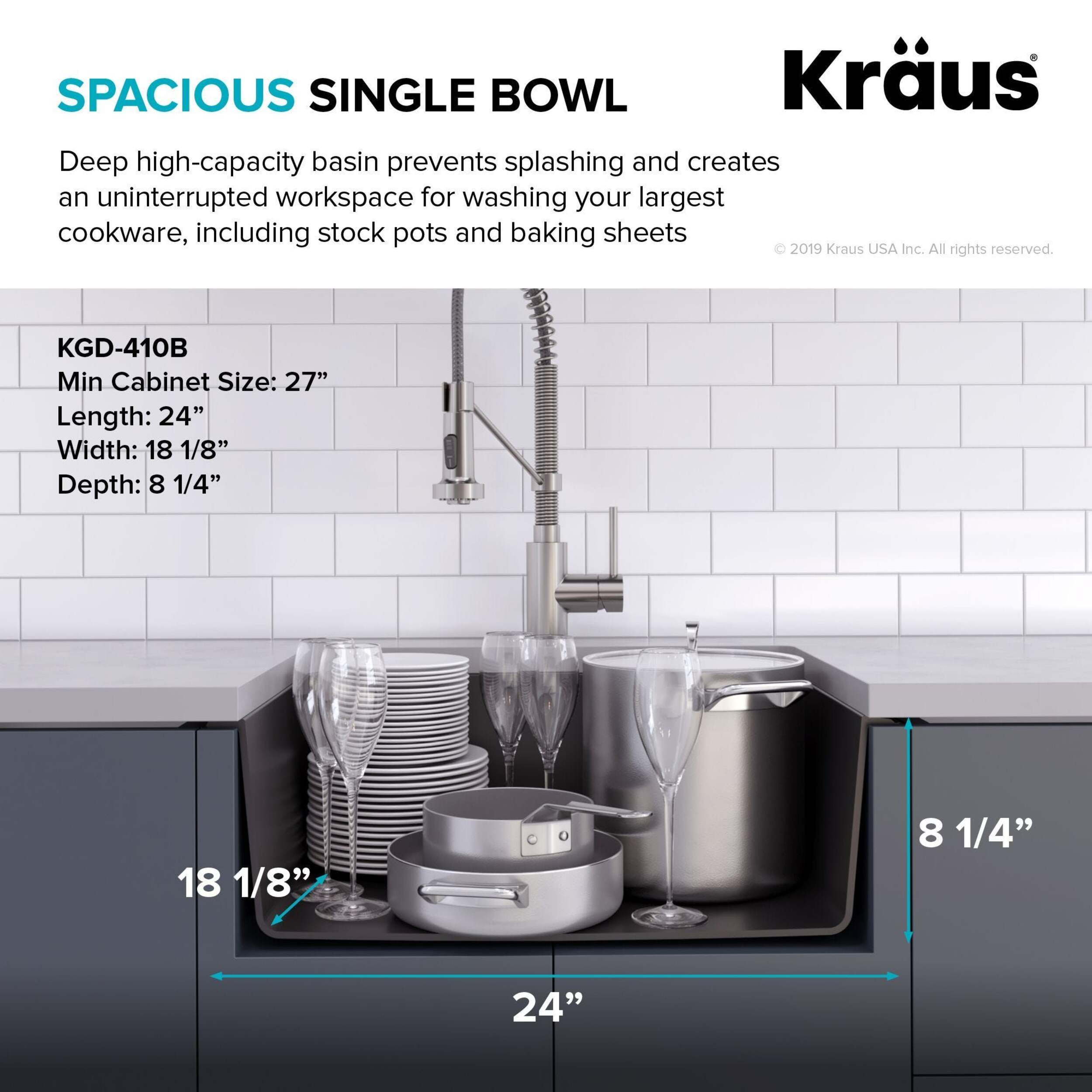 Extra-deep basin design with standard 3.5" (8.9 cm) drain opening