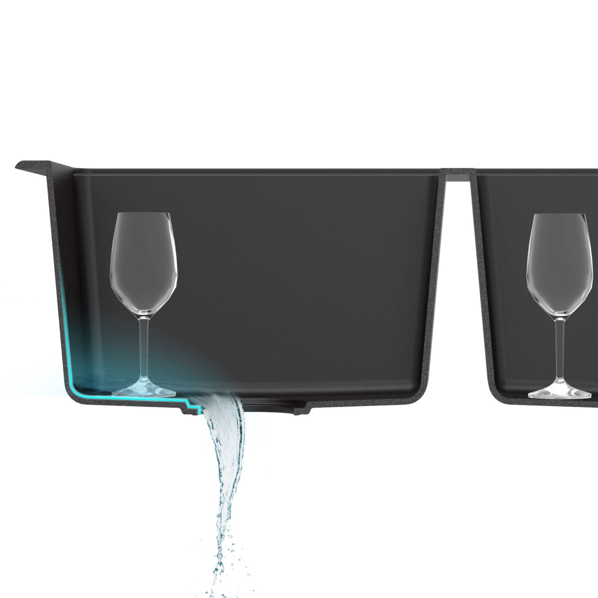 Extra-deep basin design with standard 3.5" (8.9 cm) drain opening