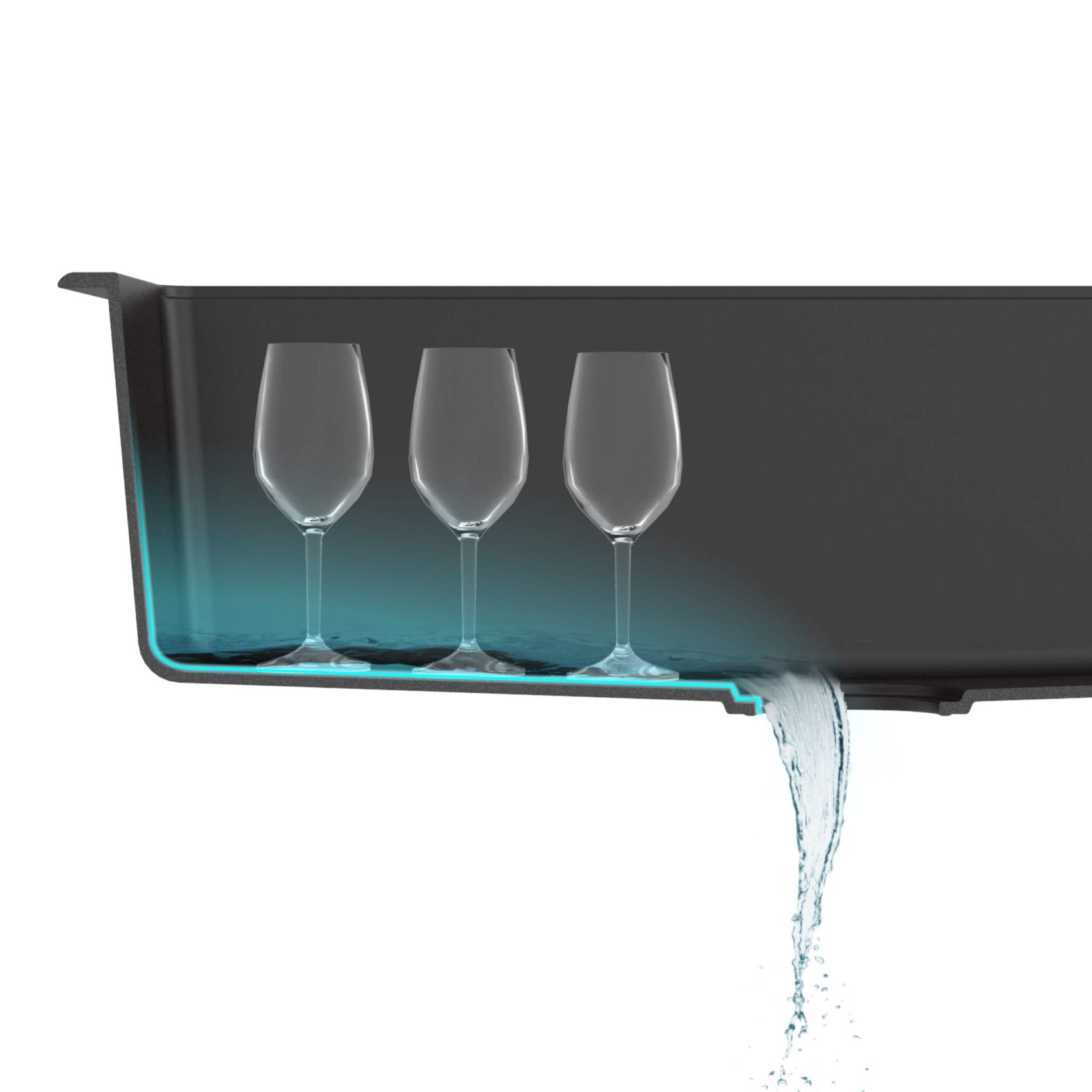 Extra-deep basin design with standard 3.5" (8.9 cm) drain opening