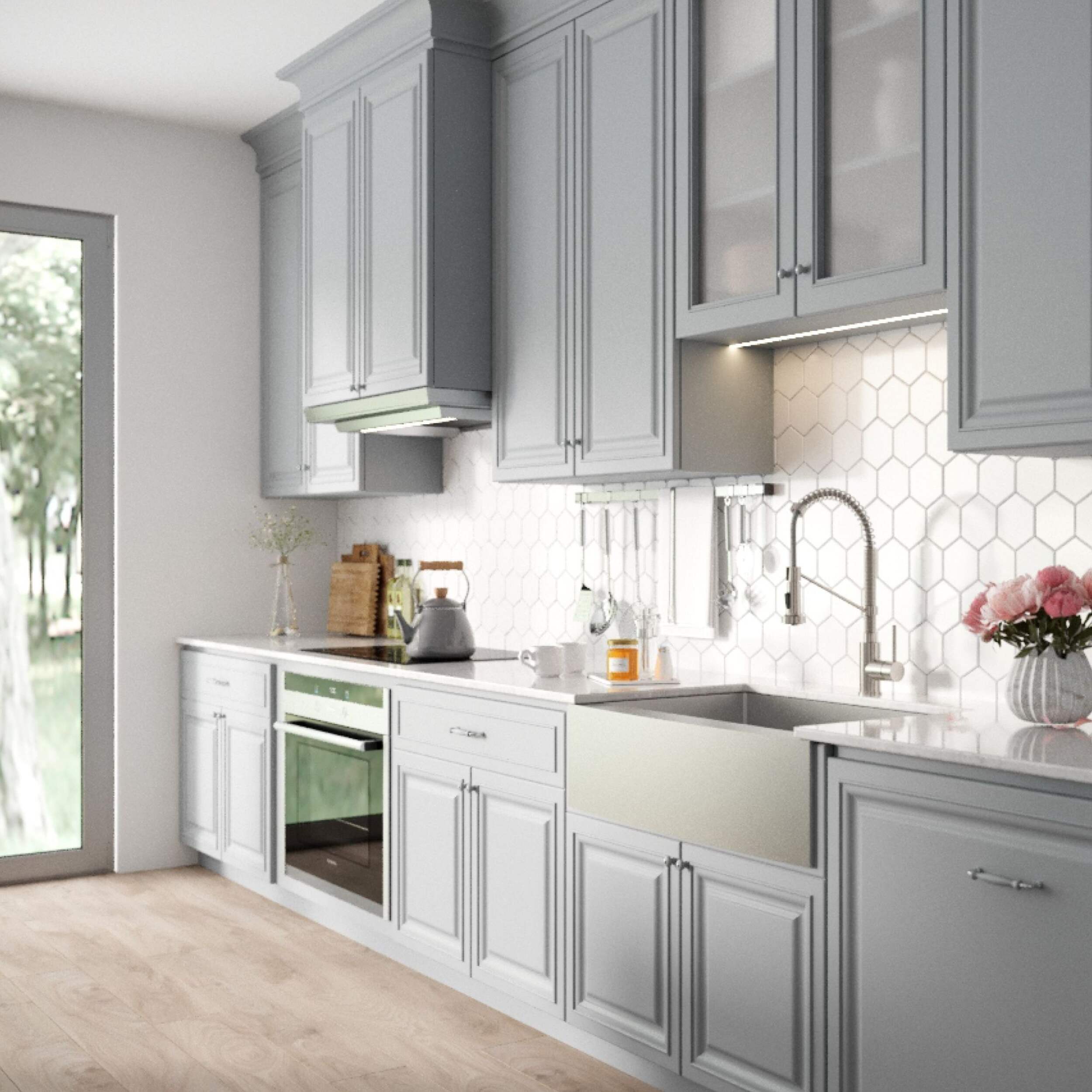 Commercial grade satin finish is highly wear-resistant and easy to clean