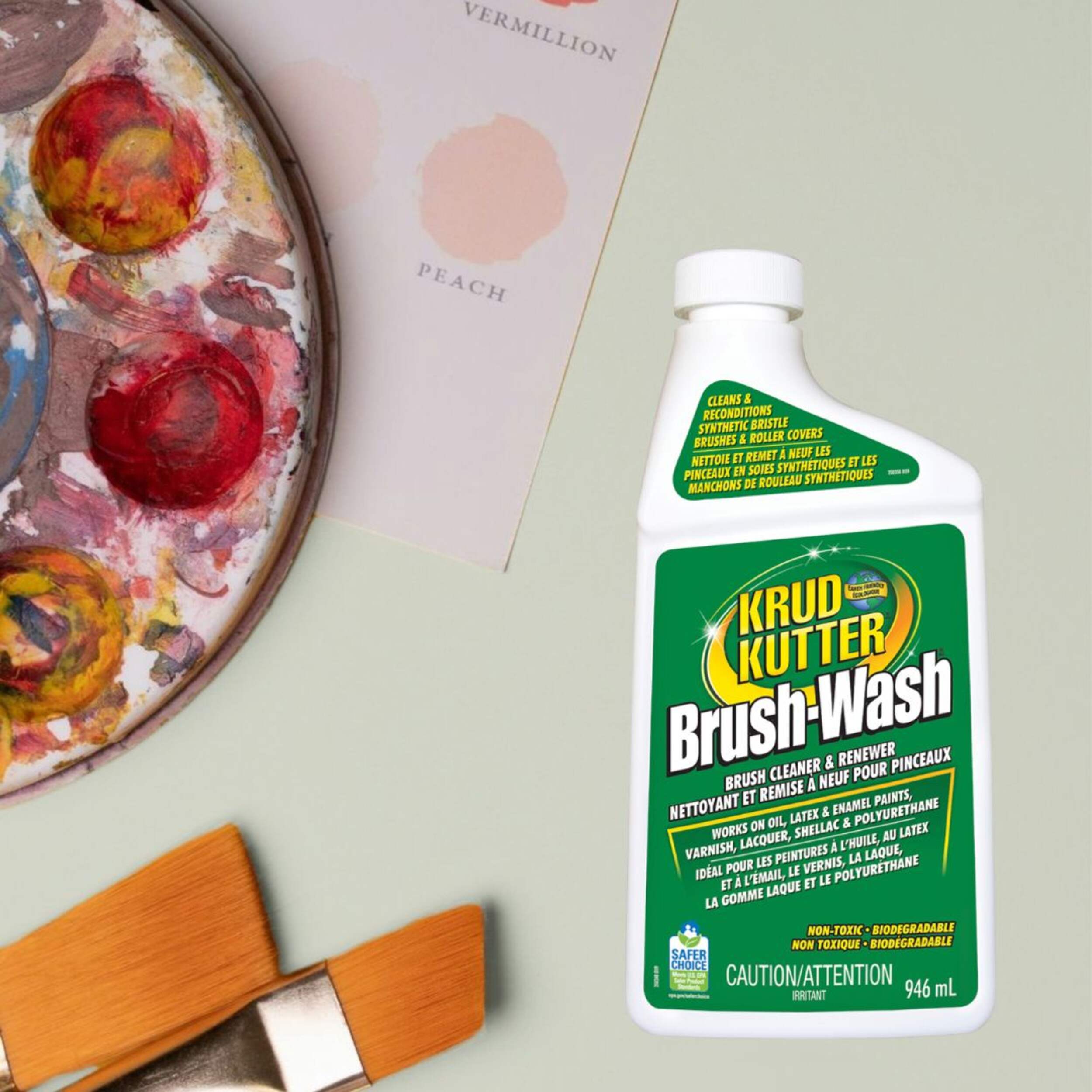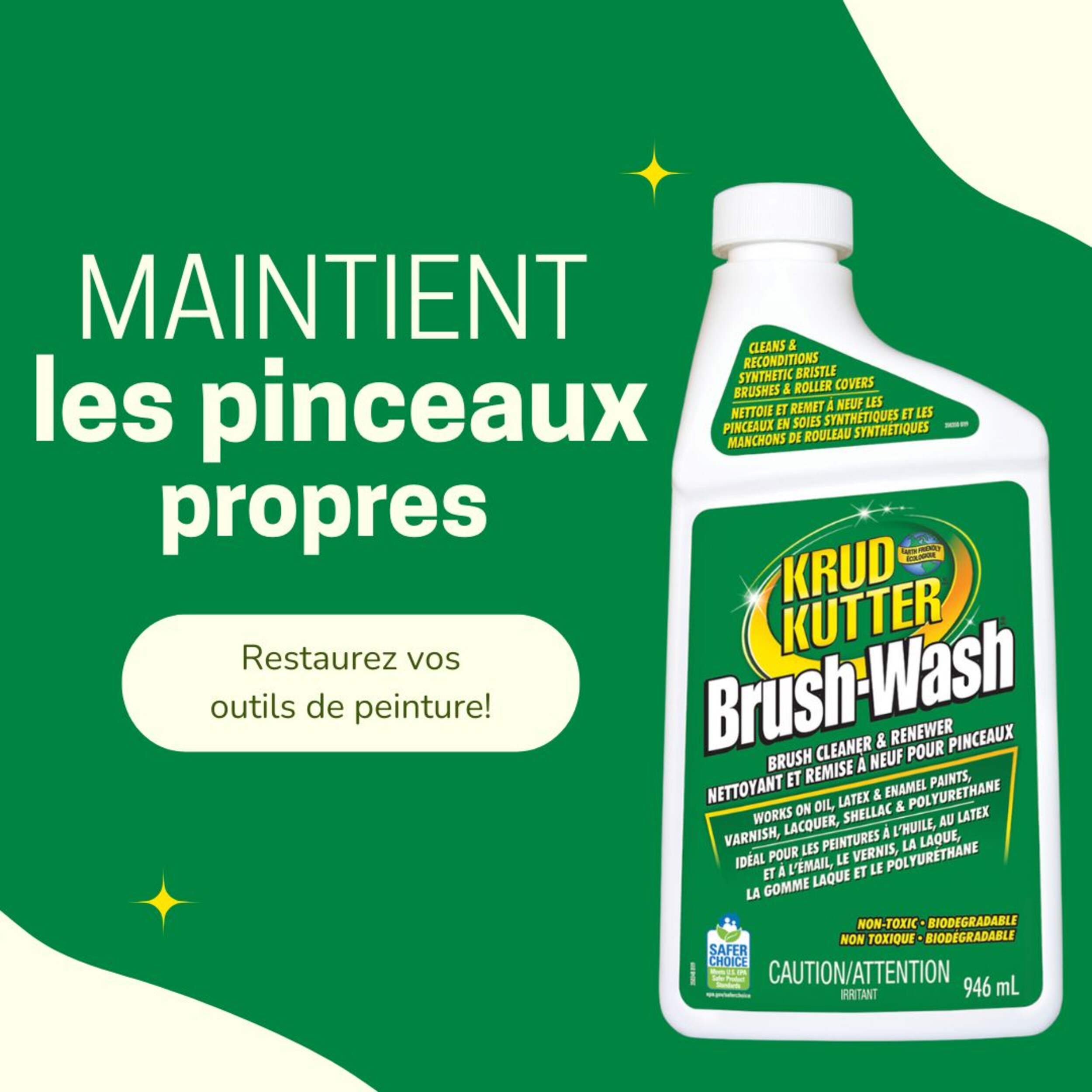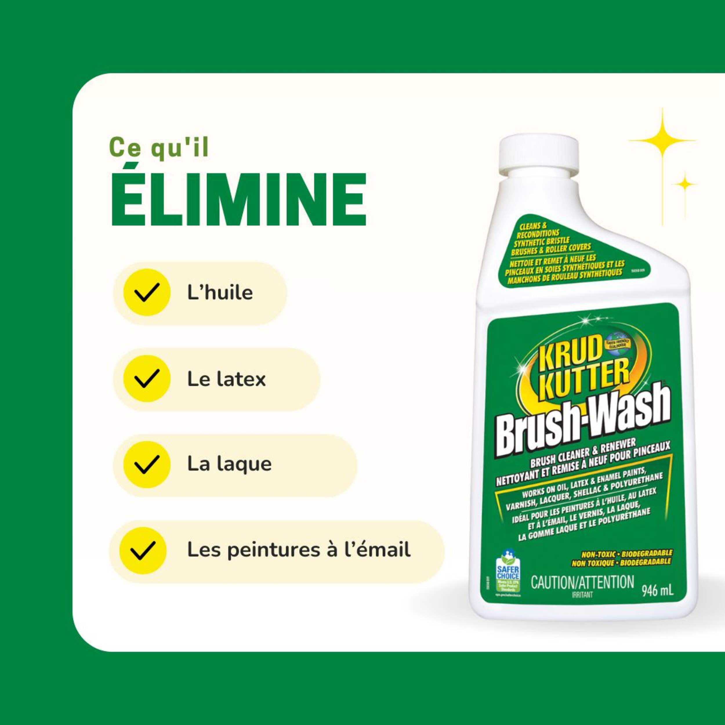 Krud Kutter Brush-Wash Cleaner & Renewer removes dried paint from most types of paint applicators. Specially formulated to clean and recondition synthetic bristle brushes and roller covers. This biodegradable, water-based formula is safe, fast and effective on oil, latex and enamel paints, varnish, lacquer, shellac, and polyurethane.
