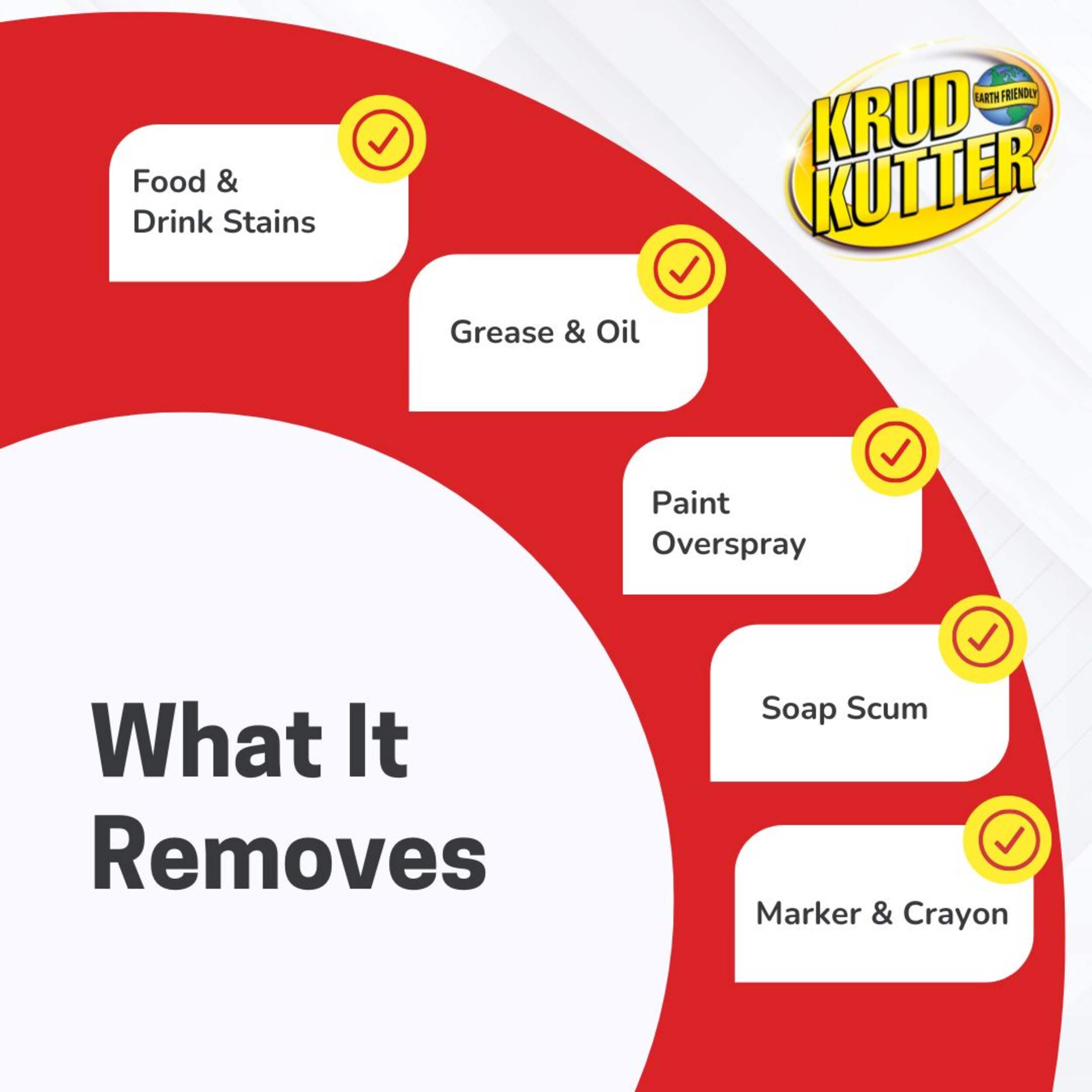 KRUD HAPPENS! No other single product removes really tough soils as quickly and effectively from so many different surfaces. Cuts grease, grime, oil & wax fast. Removes dried latex paint and is an excellent tile and grout cleaner.