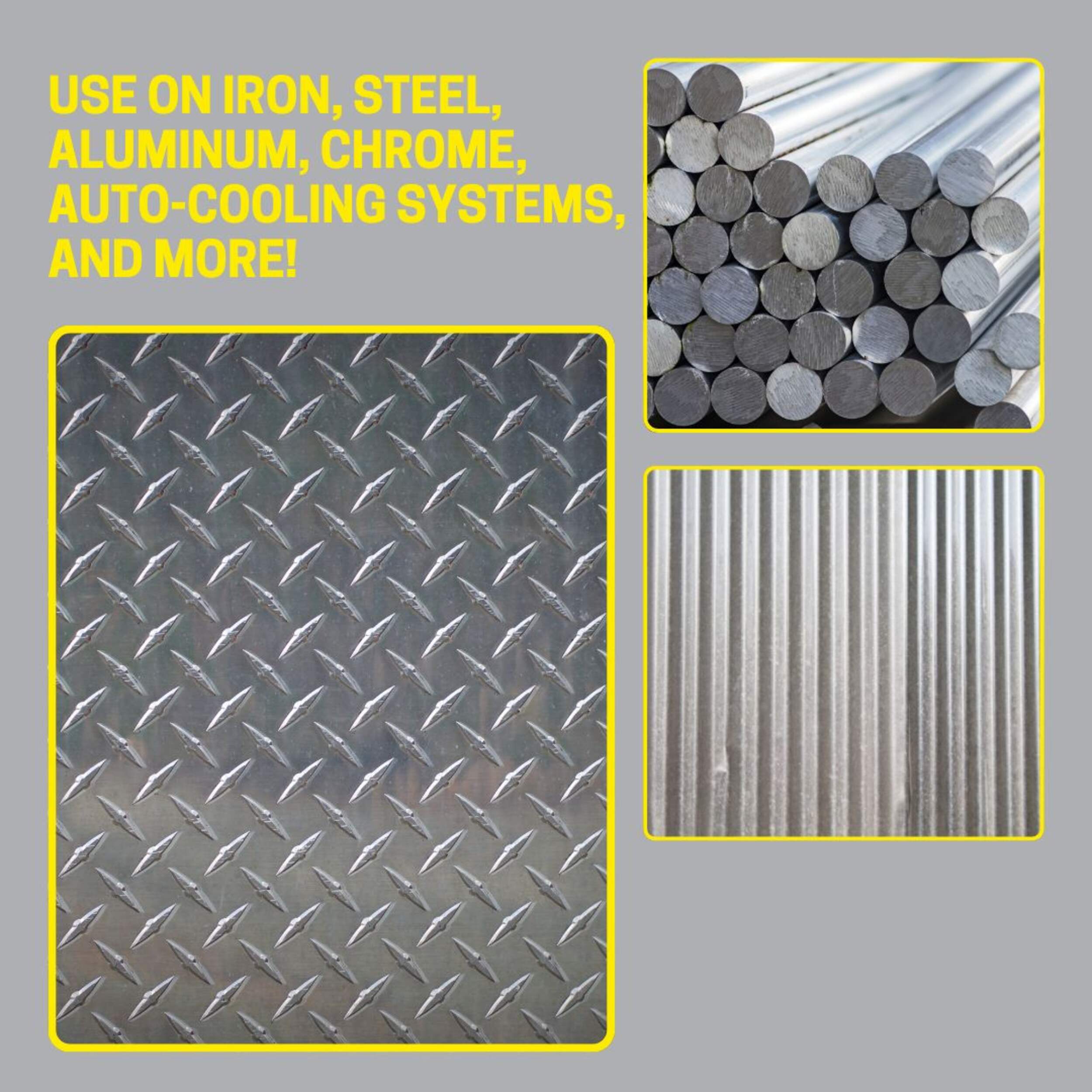 Effective on iron, steel, aluminum, chrome, auto-cooling systems and more
