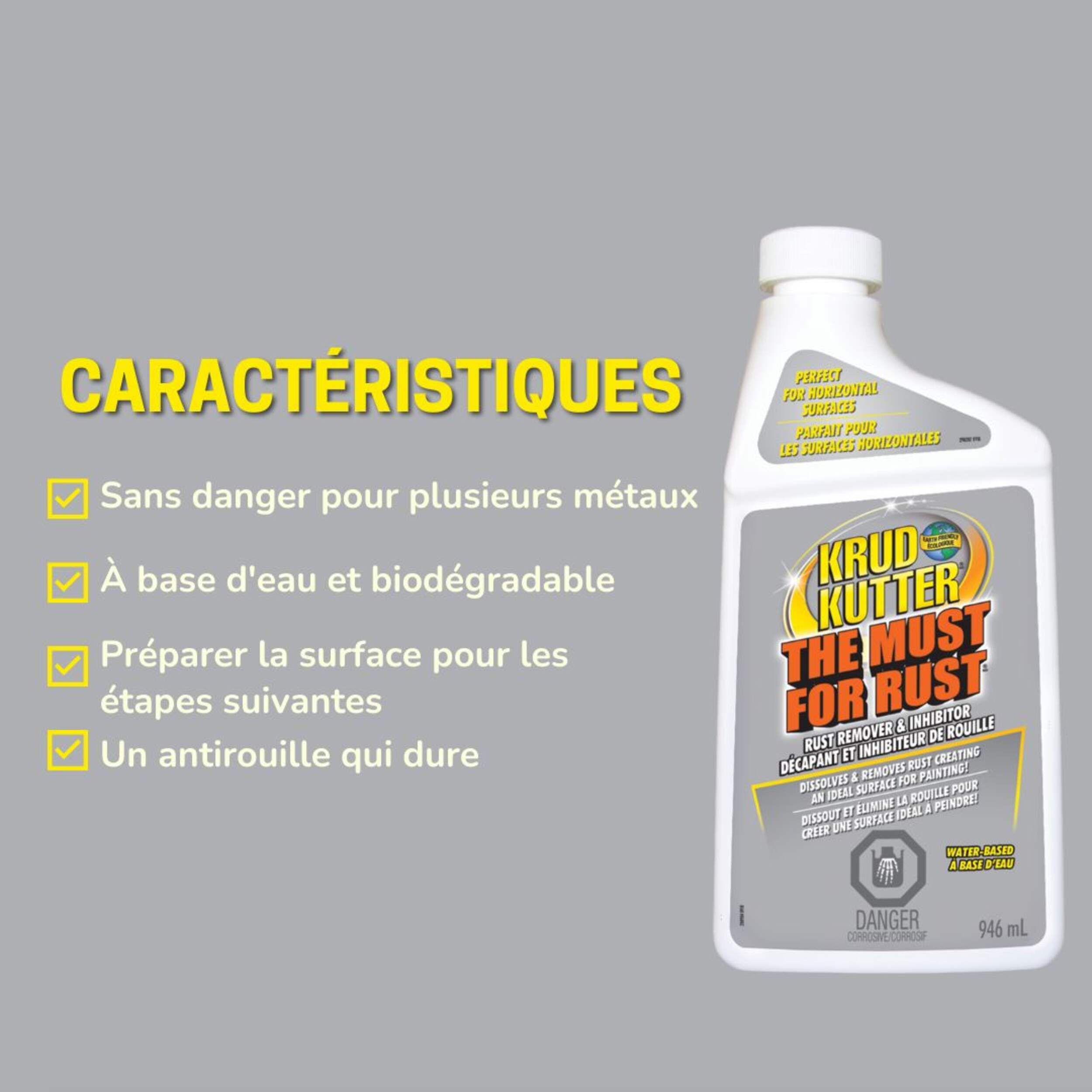 Krud Kutter The Must For Rust Liquid Rust Remover removes rust and inhibits its return