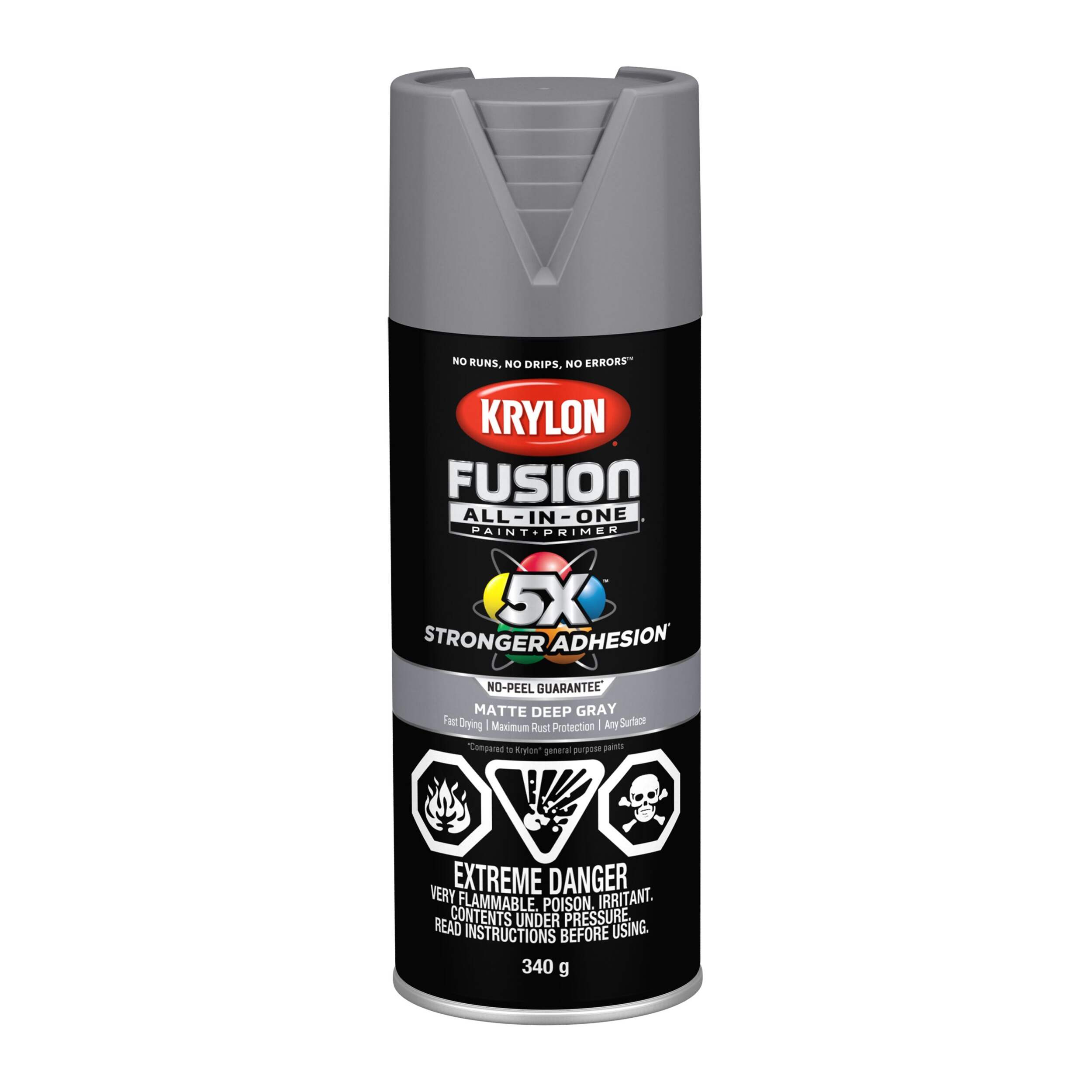 Achieve a sleek and modern look with Krylon Fusion All-In-One Deep Grey Matte Spray Paint. This all-in-one aerosol formula is perfect for DIY projects and crafts. Thanks to the spray paint's superior adhesion and rust prevention properties, your creations stay flawless both indoors and out. With Krylon spray paint, the possibilities are endless.