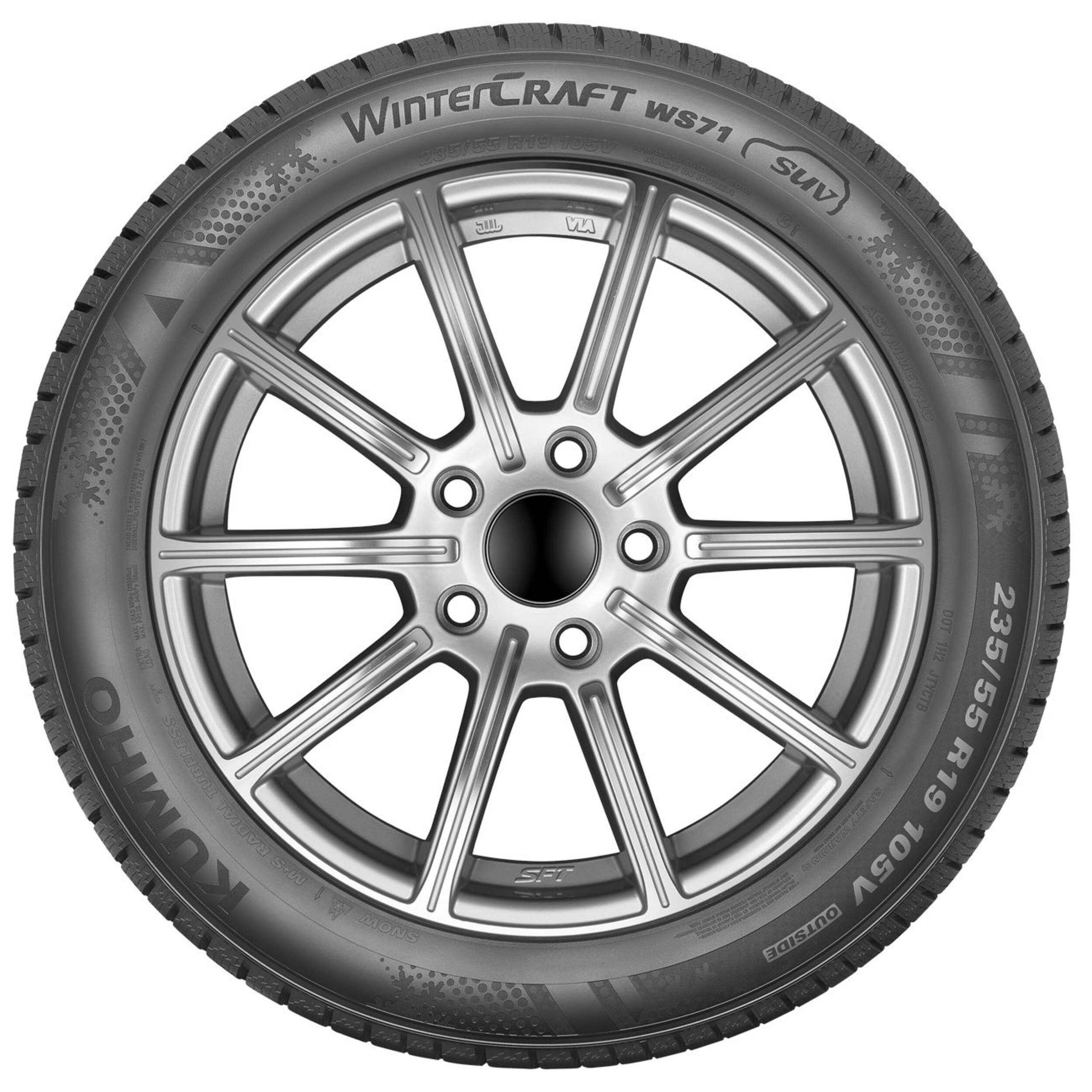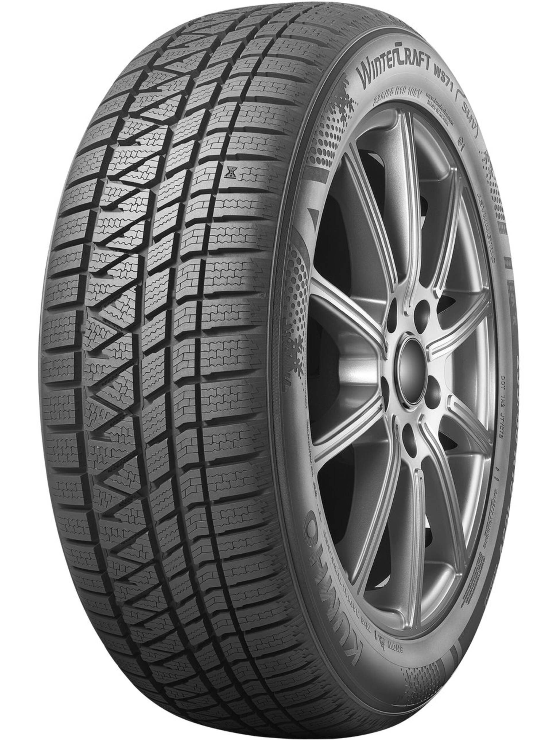 The Kumho WinterCraft SUV WS71 Tire delivers superior winter traction and handling designed for standard SUVs. Built with a directional tread design, 3D siping, and rigid tread blocks, this tire provides enhanced braking, acceleration, and cornering grip on snow as well as ice. The asymmetric tread pattern features substantial shoulder blocks for responsive steering input, while circumferential grooves help to channel away slush and water. With a new visual sidewall design and easy-to-read wear indicators, the WinterCraft SUV WS71 gives SUV drivers the ultimate in snow and ice performance.