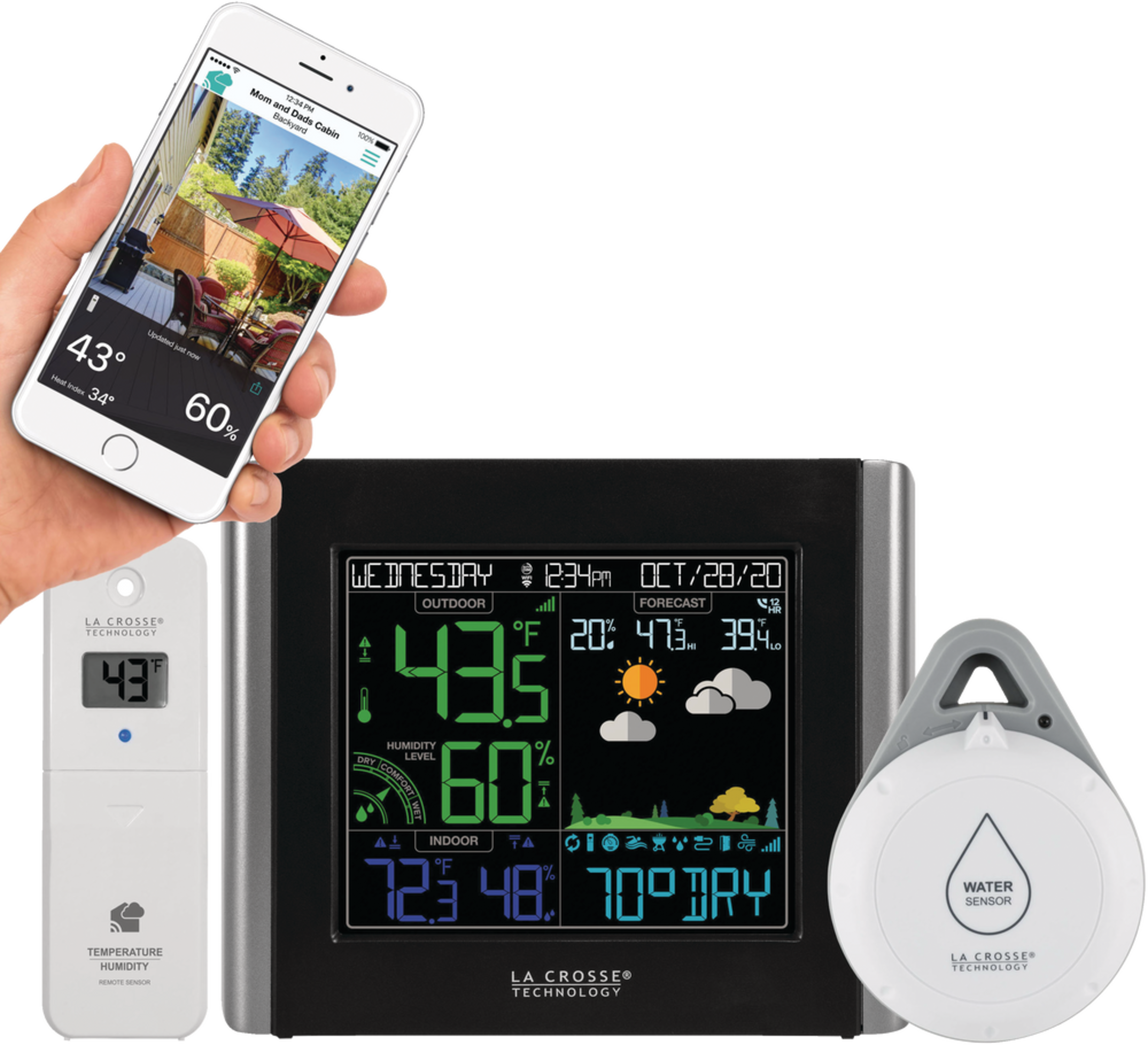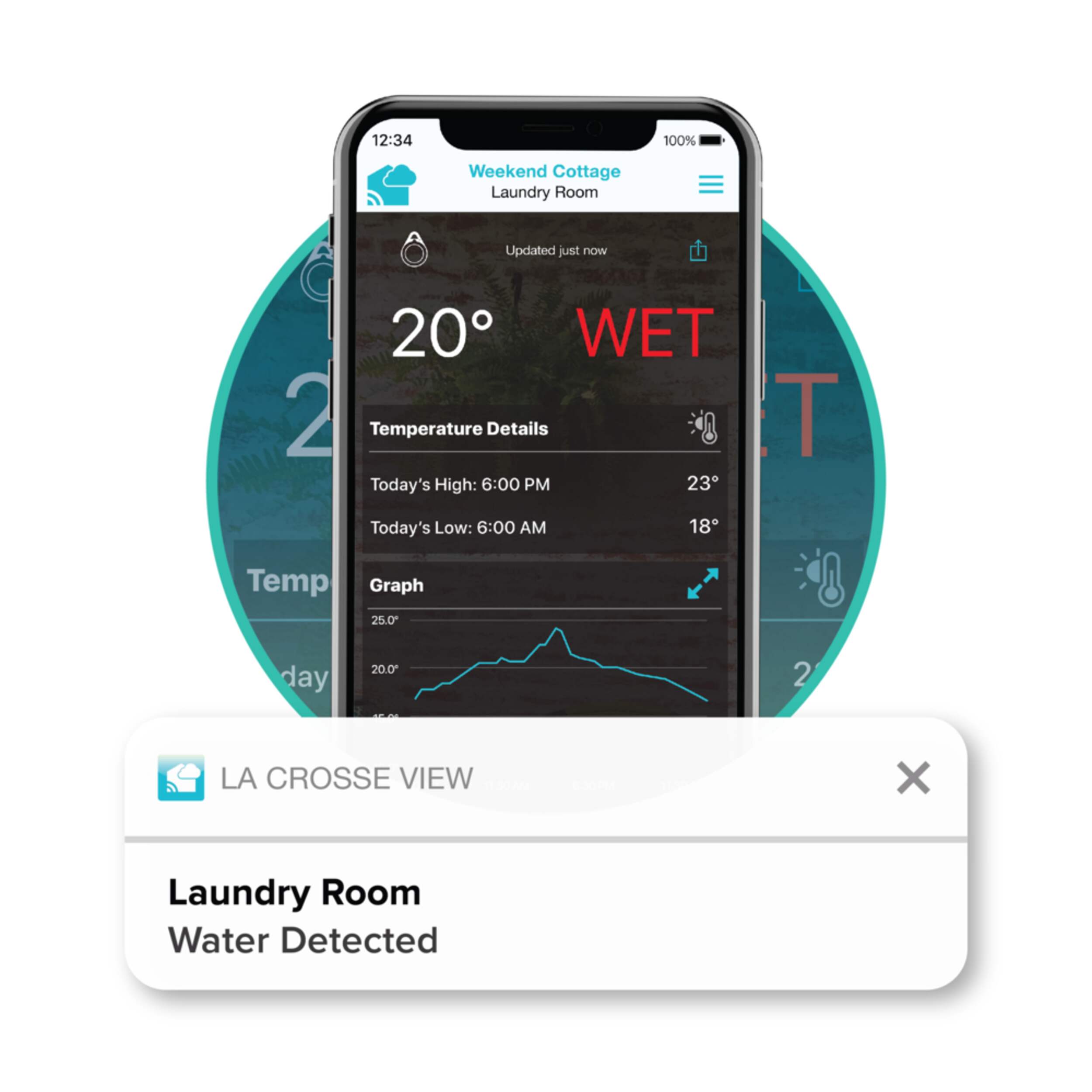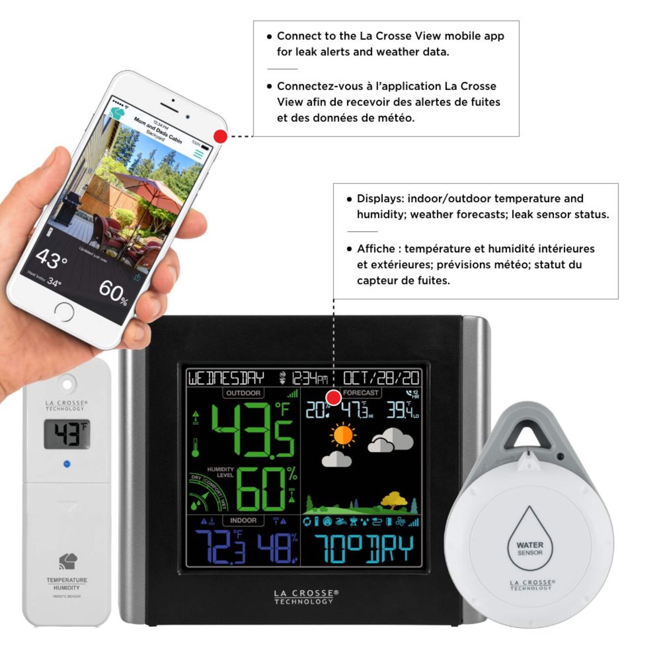 Connect to La Crosse View app on mobile phone to receive remote alerts and keep track of conditions