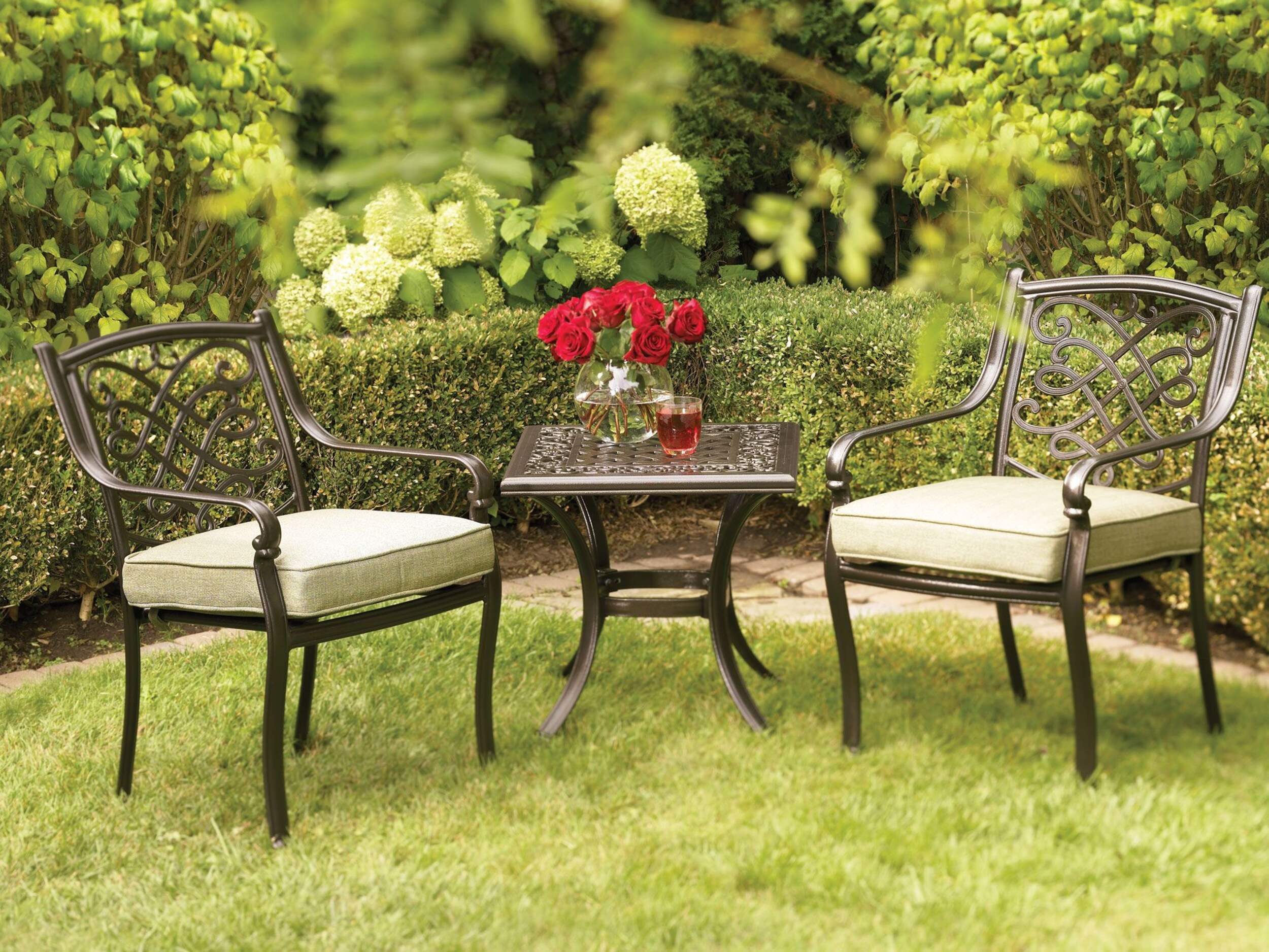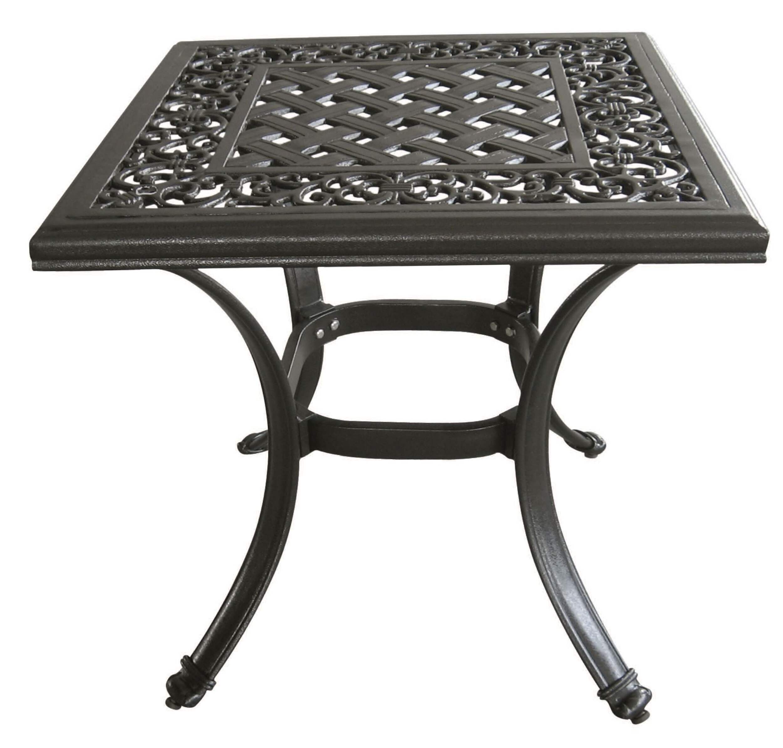 Durable, rust-proof aluminum frame with decorative woven design