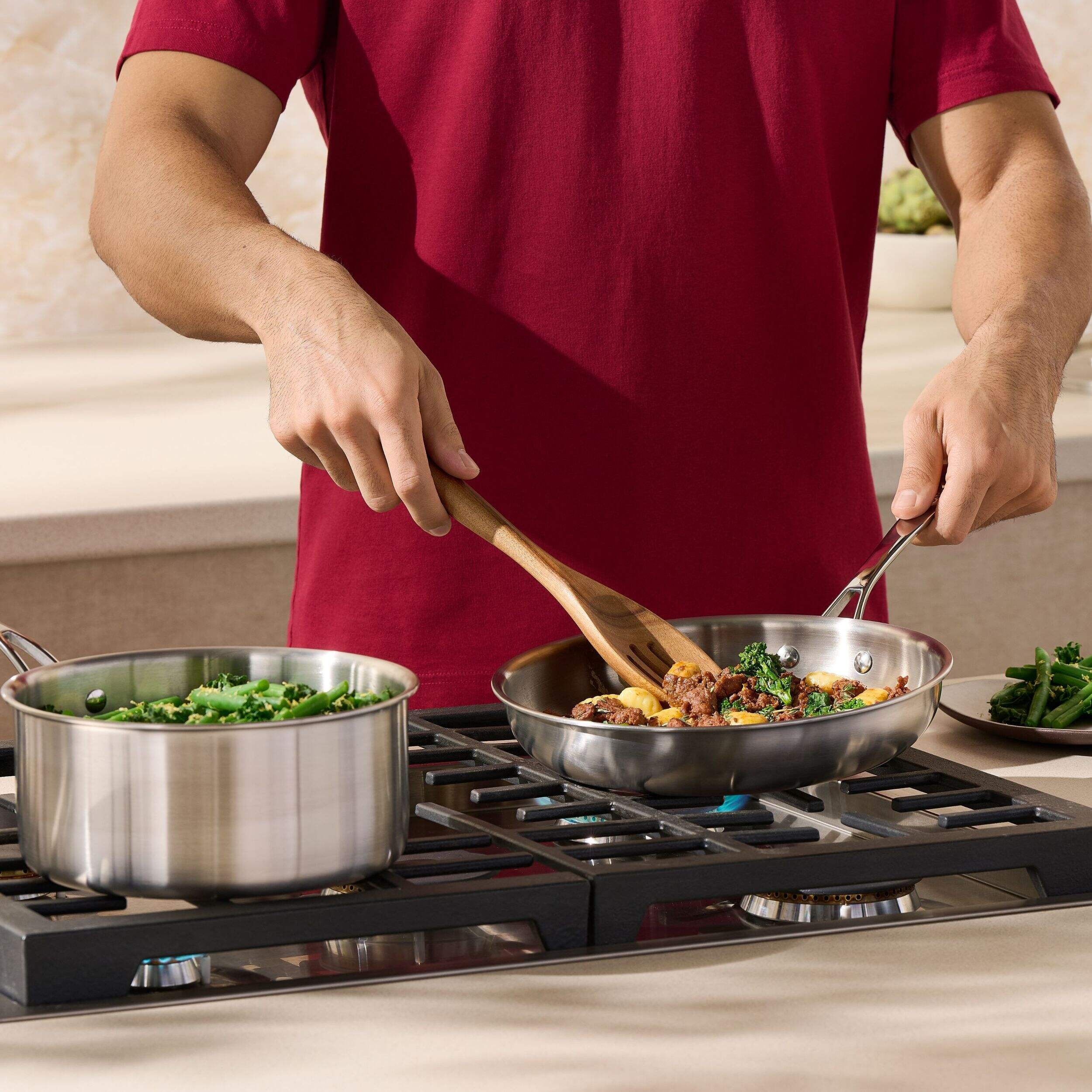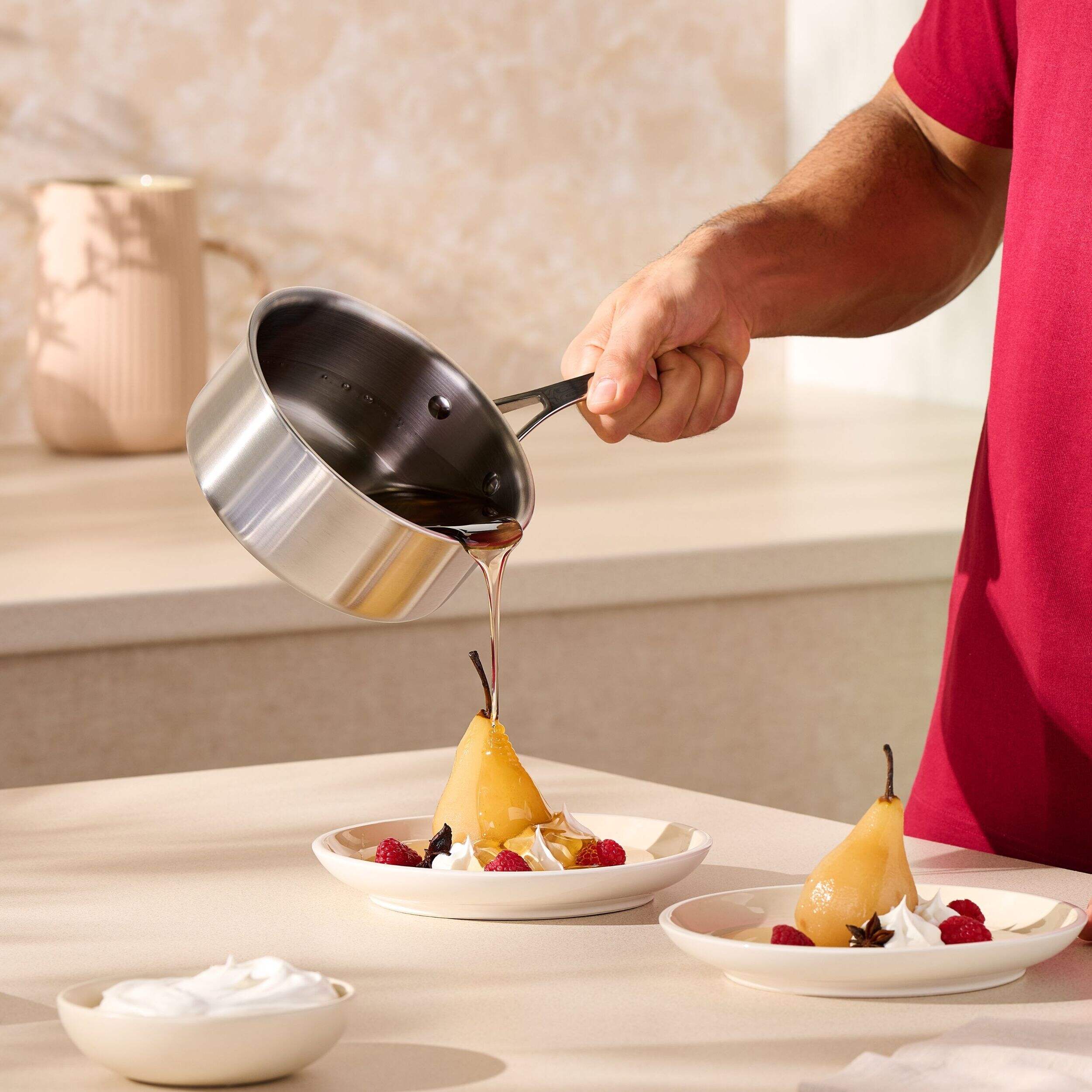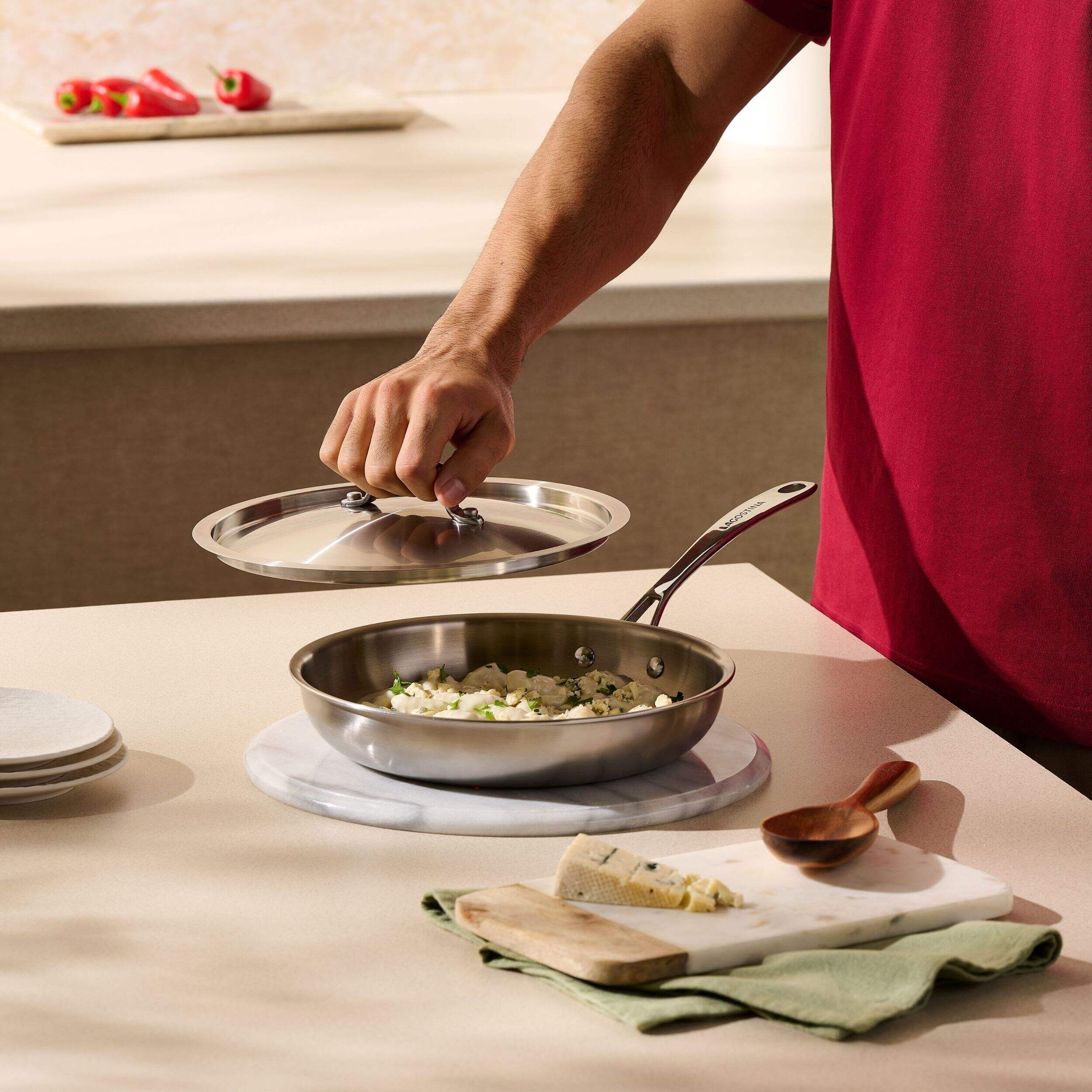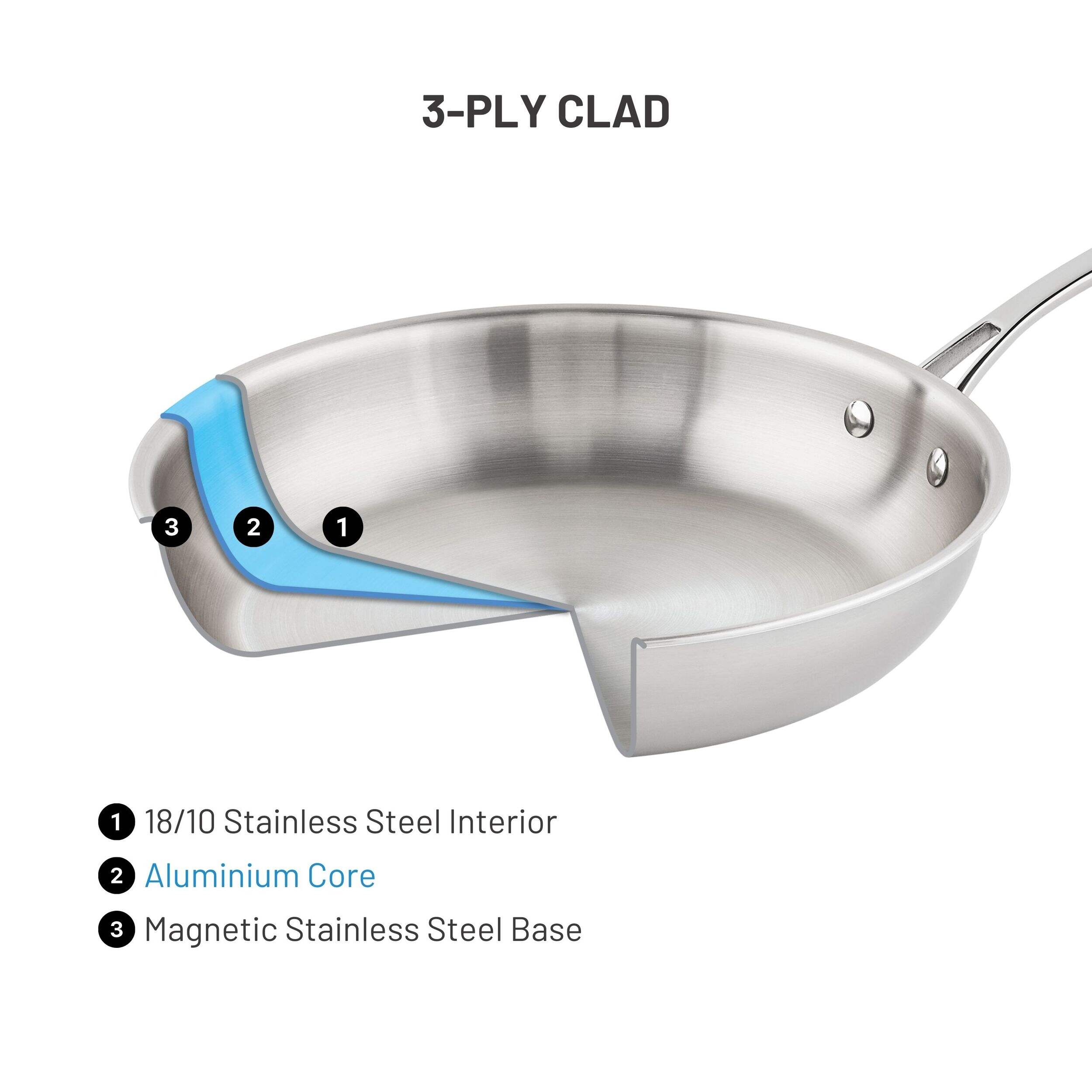 3-PLY CLAD construction provides even heating distribution from base to rim