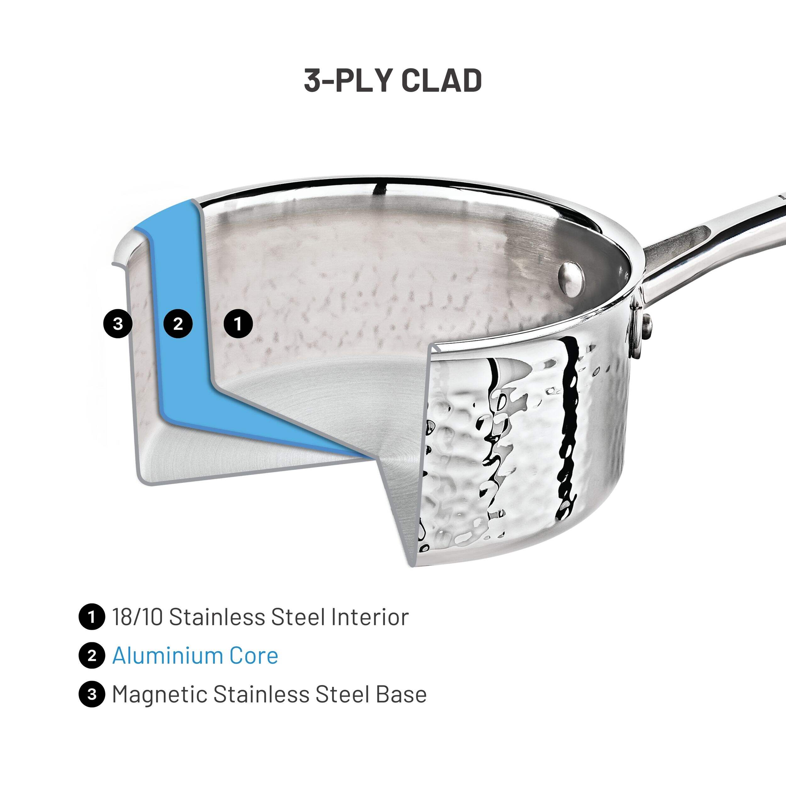 3-PLY CLAD construction provides even heating distribution from base to rim