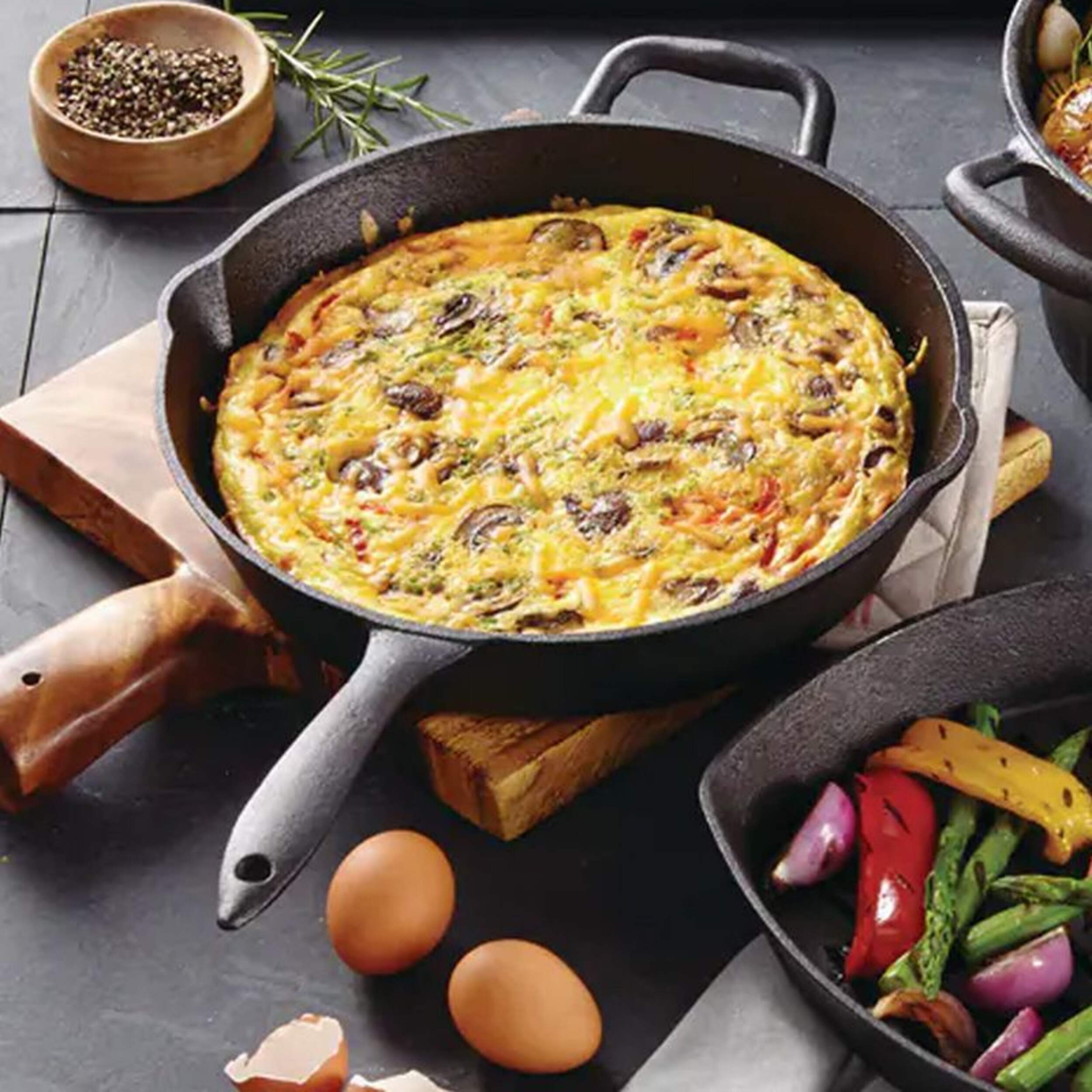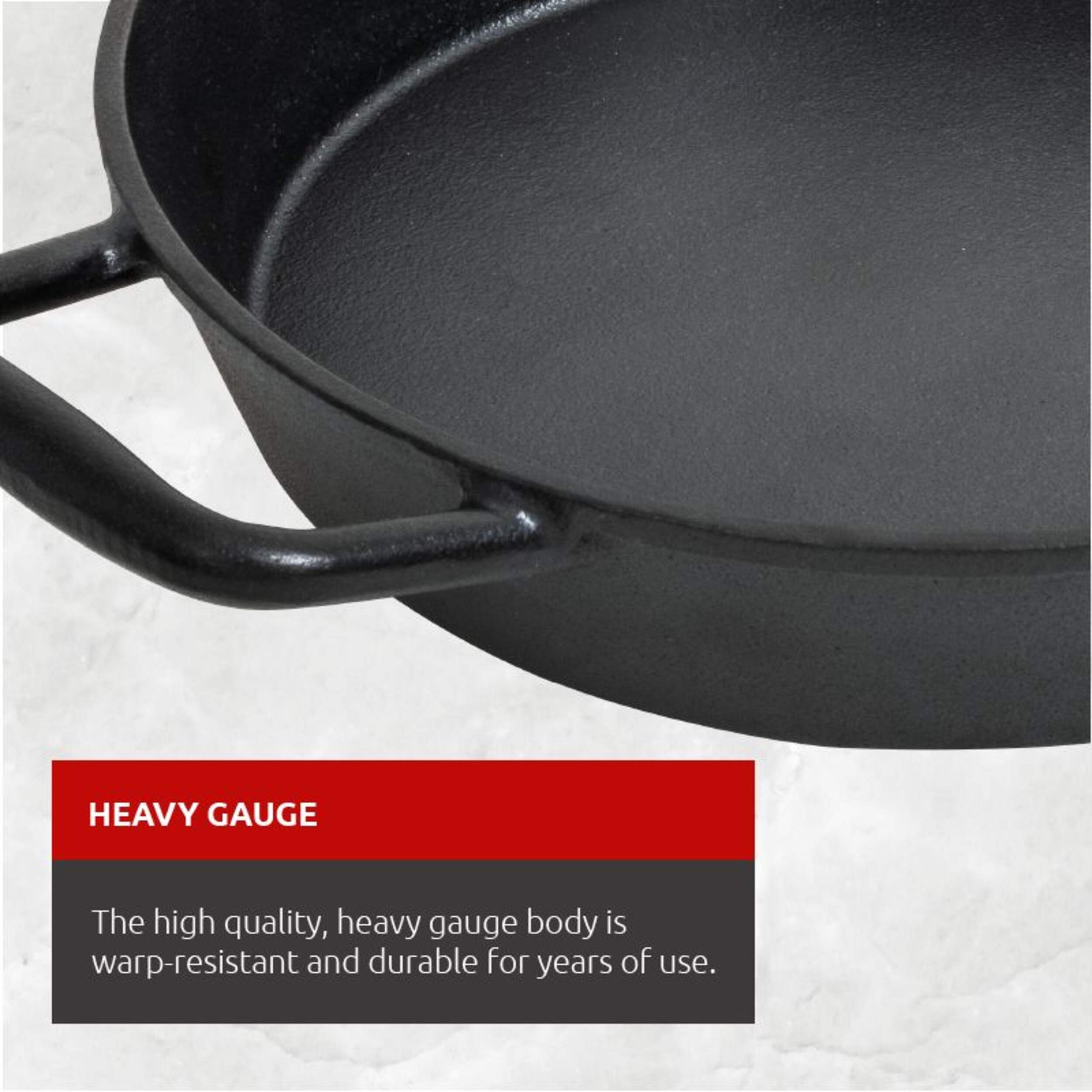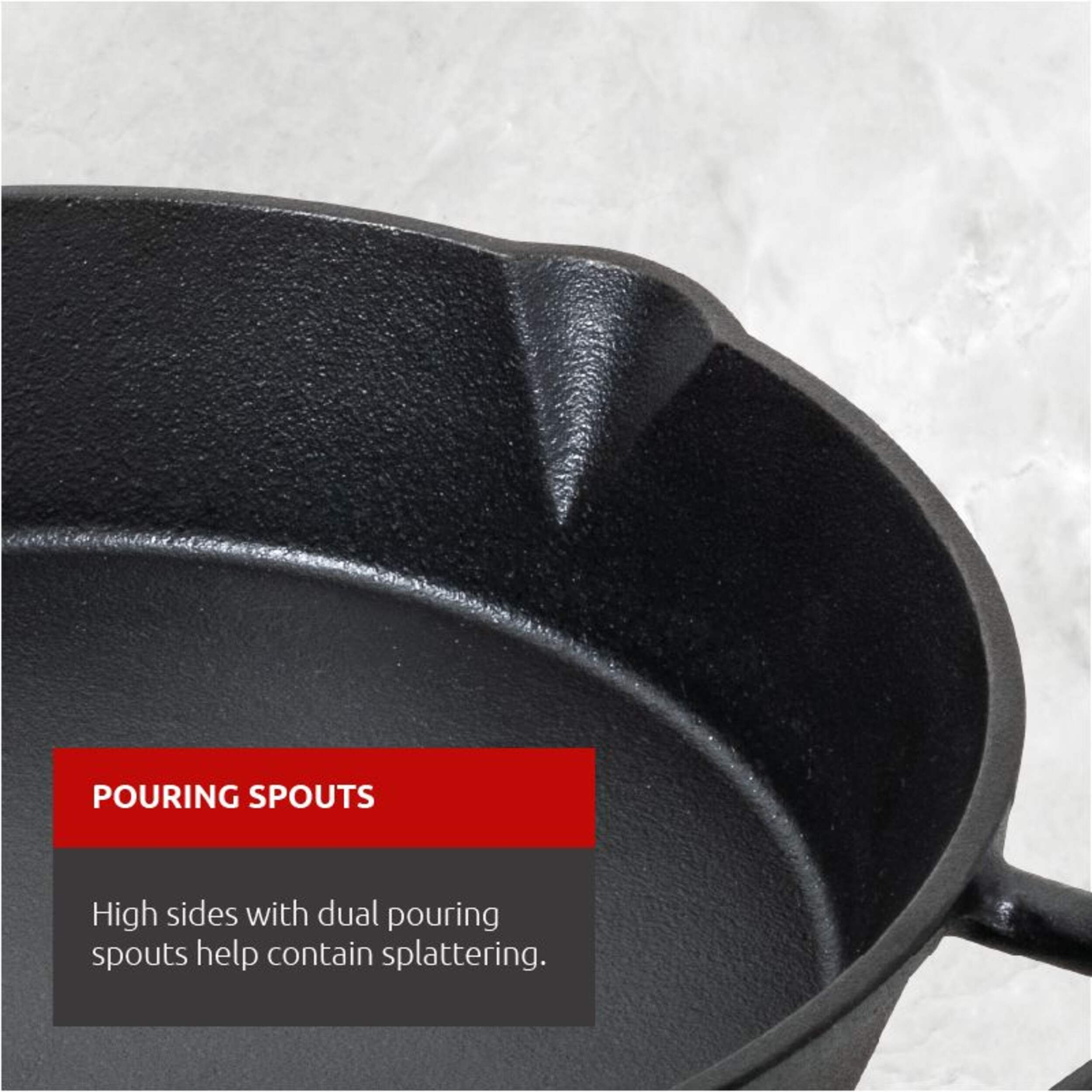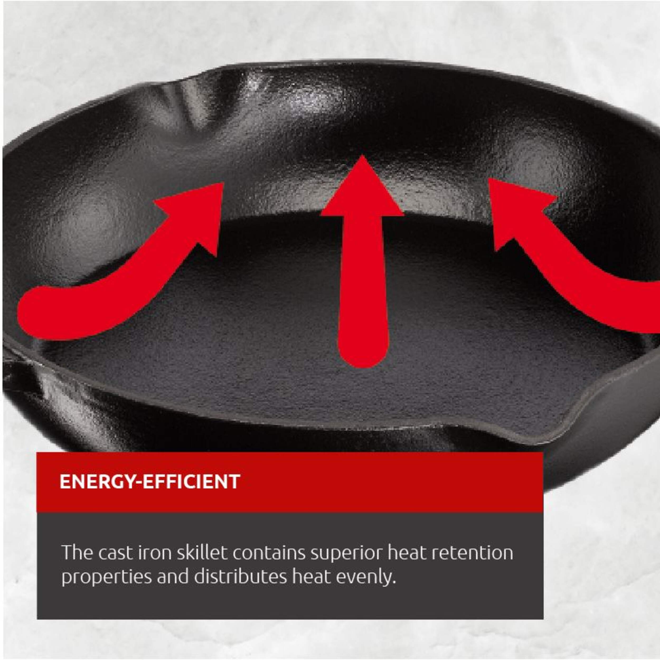 The Lagostina Preseasoned Cast Iron Frying Pan comes ready to use straight out of the packaging and does not require seasoning. Designed to be energy-efficient, this piece of cast iron cookware is perfect for high temperature cooking. Its convenient shape and extra high rims help stop splattering. The cast iron skillet is equipped with a warp-resistant body that keeps its shape, even after years of cooking.