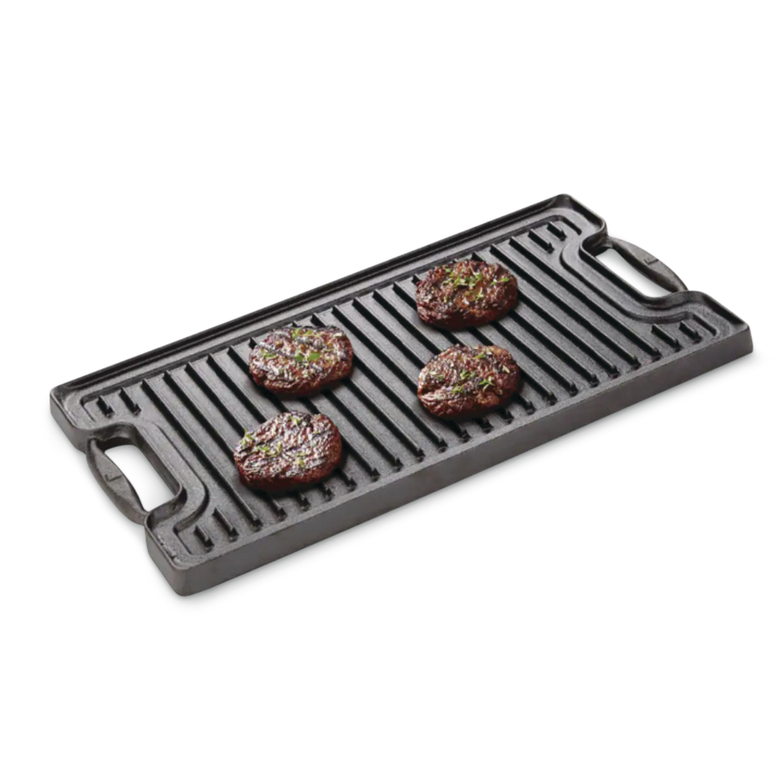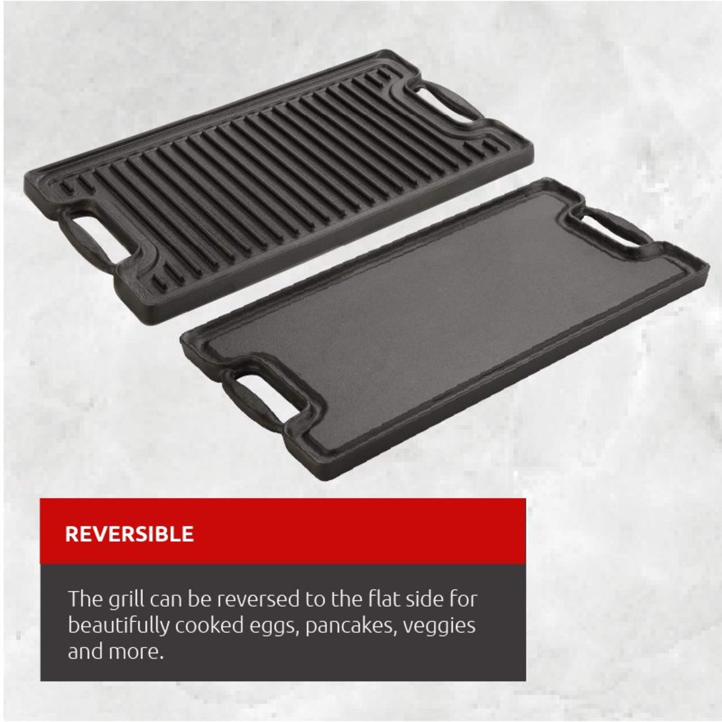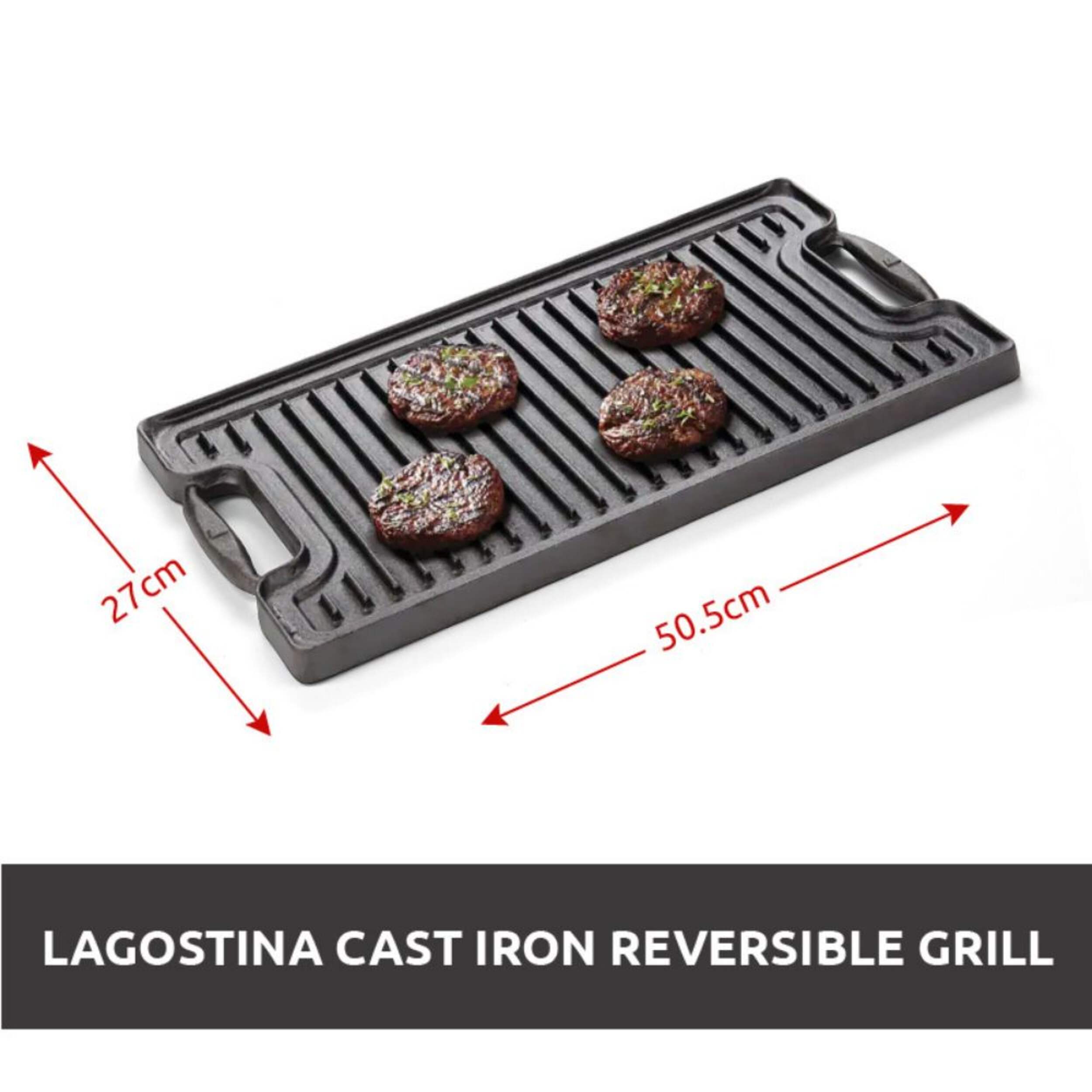 The Lagostina Pre-Seasoned Cast Iron Reversible Grill Pan is perfect for both oven and barbecue use, offering exceptional durability and performance. Enjoy perfectly seared dishes with its raised ridges, and cook with confidence knowing it requires no additional seasoning.