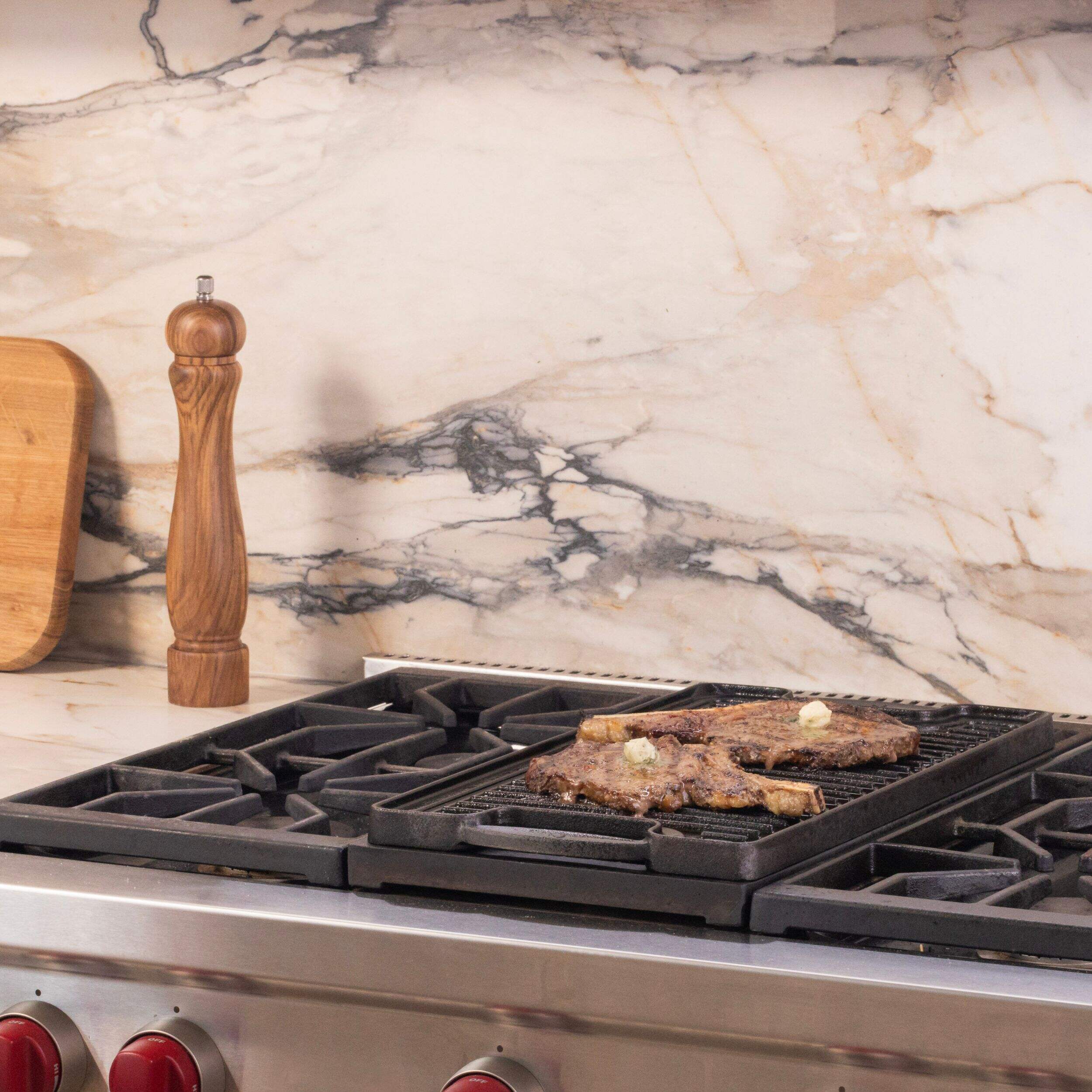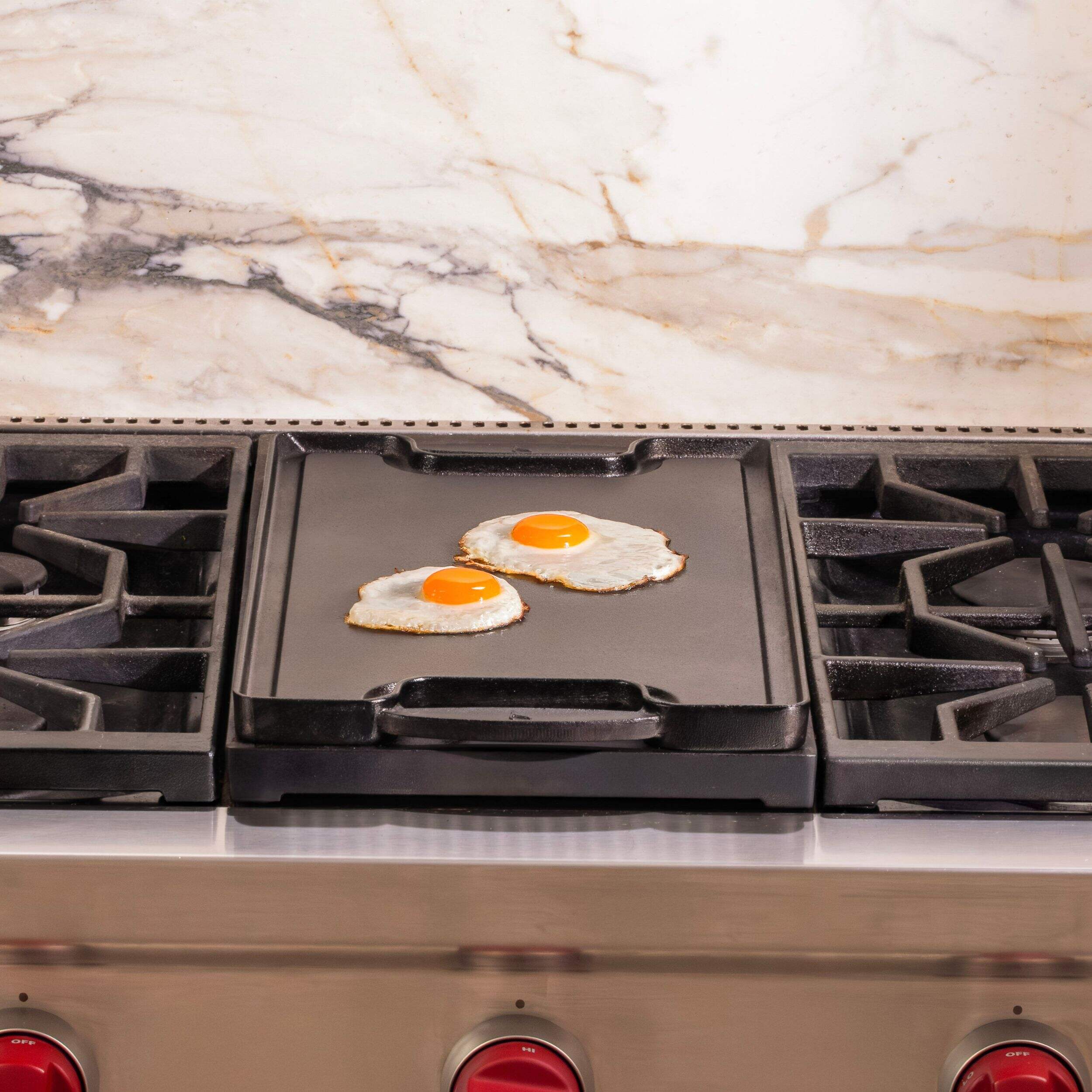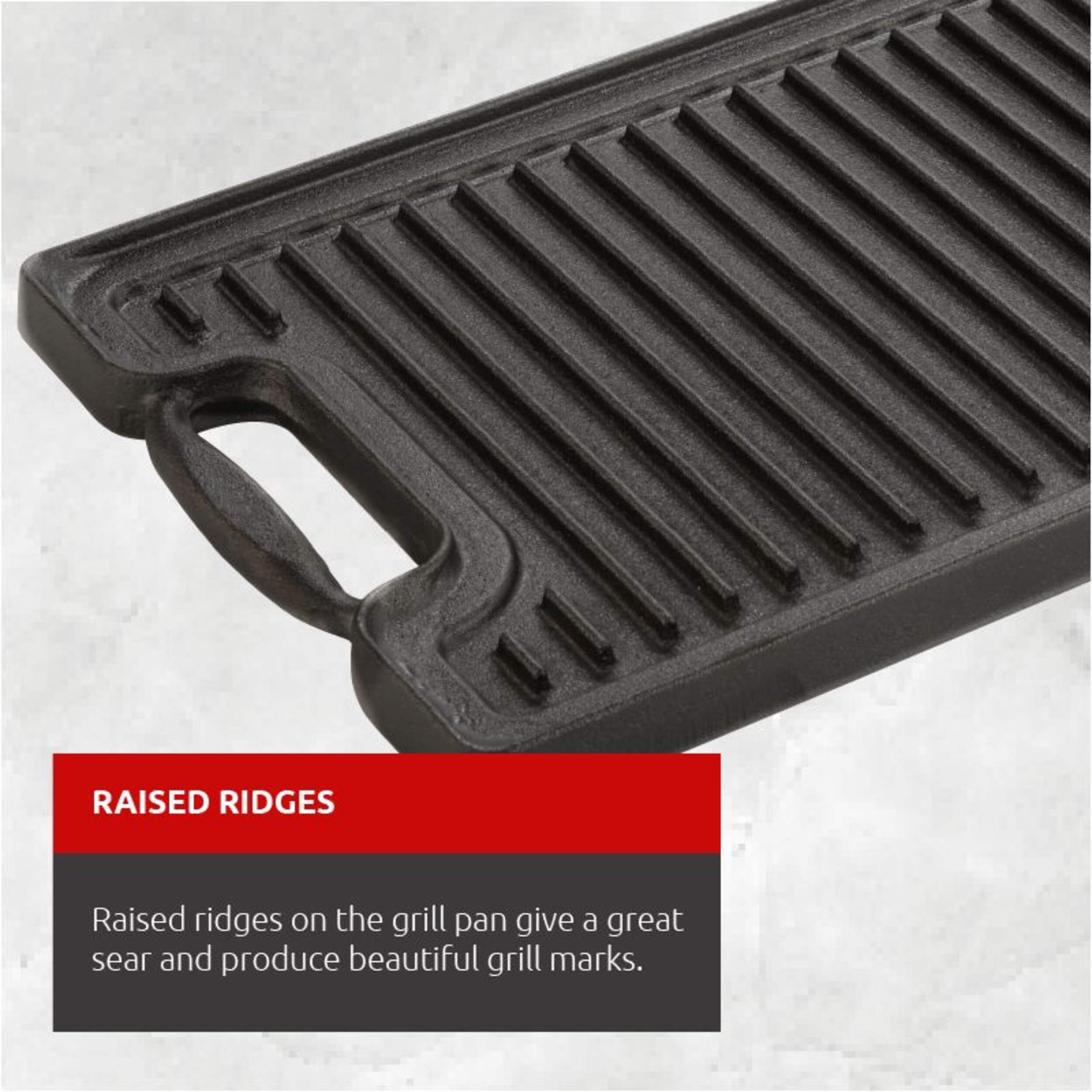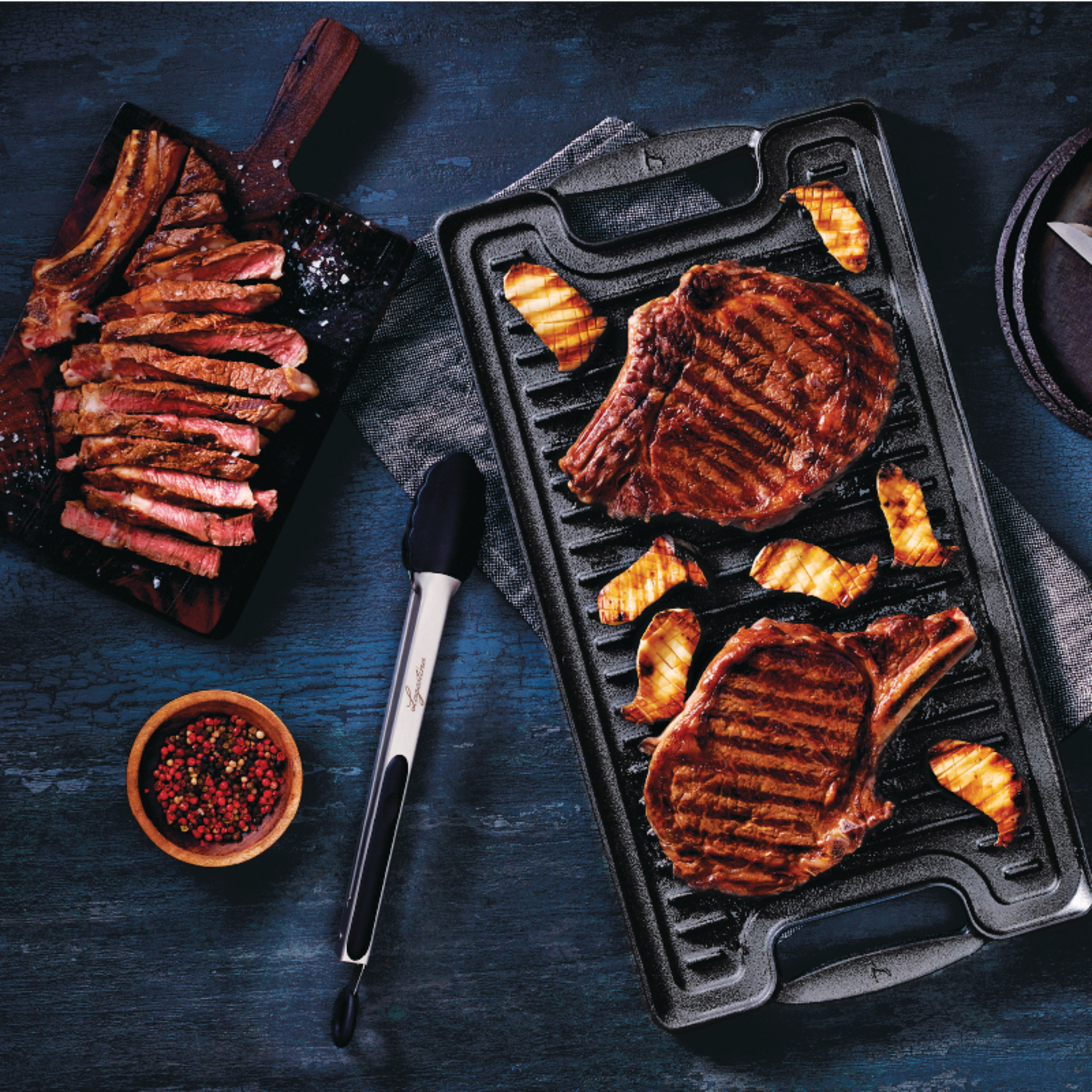 The Lagostina Pre-Seasoned Cast Iron Reversible Grill Pan is perfect for both oven and barbecue use, offering exceptional durability and performance. Enjoy perfectly seared dishes with its raised ridges, and cook with confidence knowing it requires no additional seasoning.