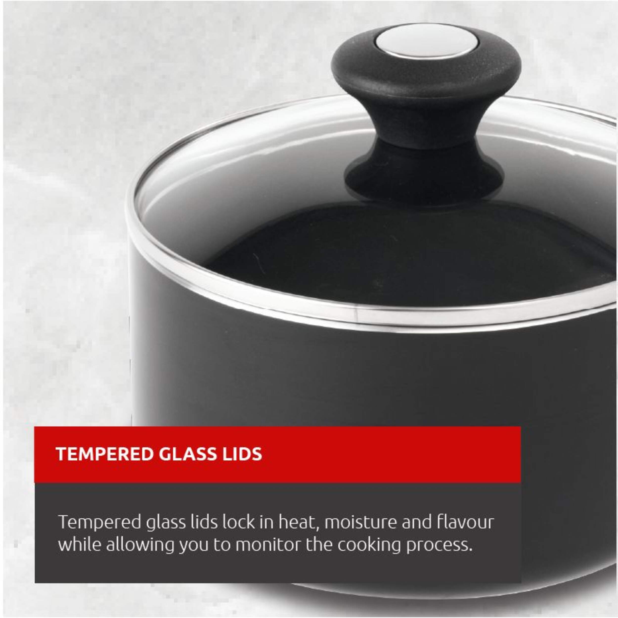 TEMPERED GLASS LIDS: Tempered glass lids lock in heat, moisture and flavour while allowing you to monitor the cooking process