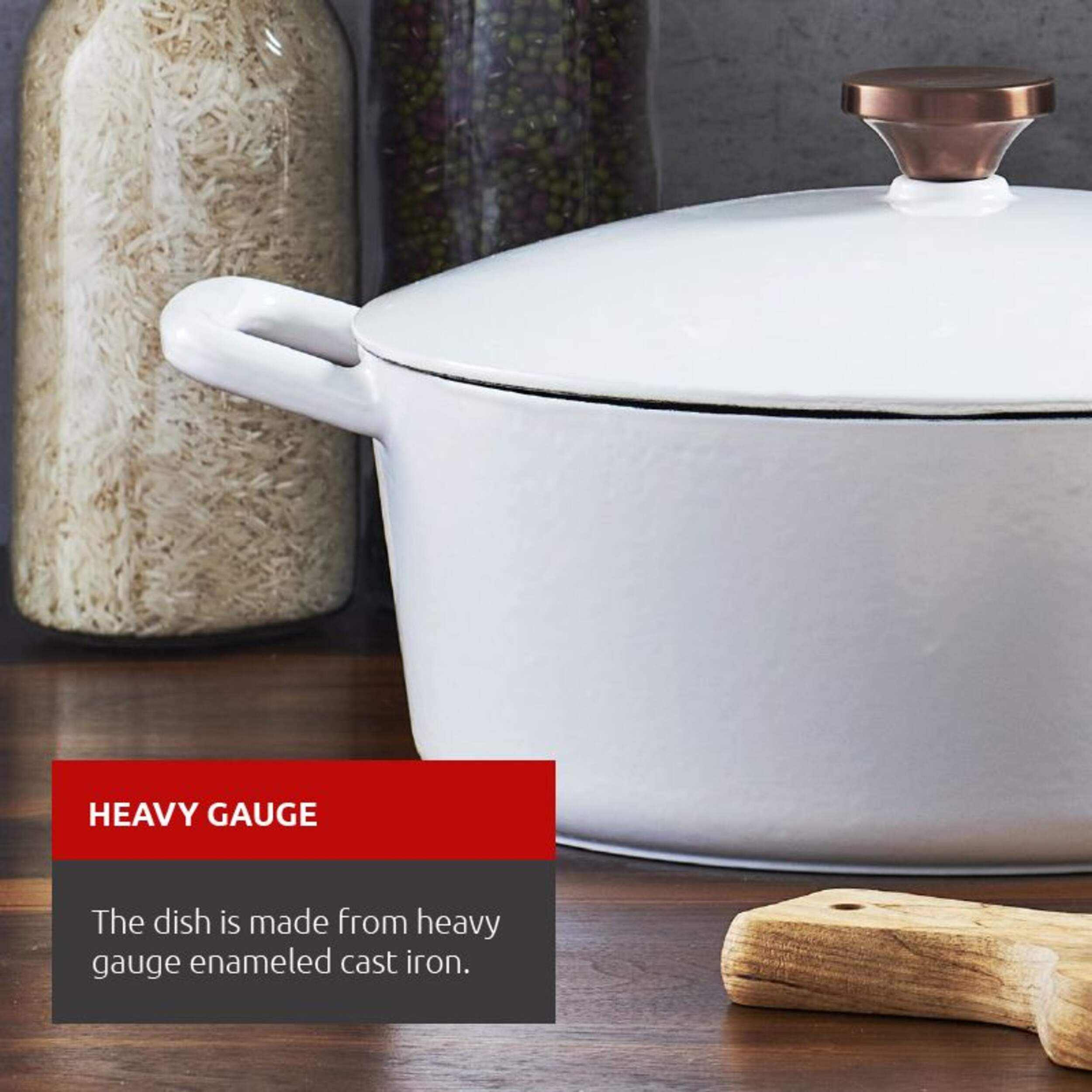 HEAVY GAUGE: The dish is made from heavy gauge enamelled cast iron