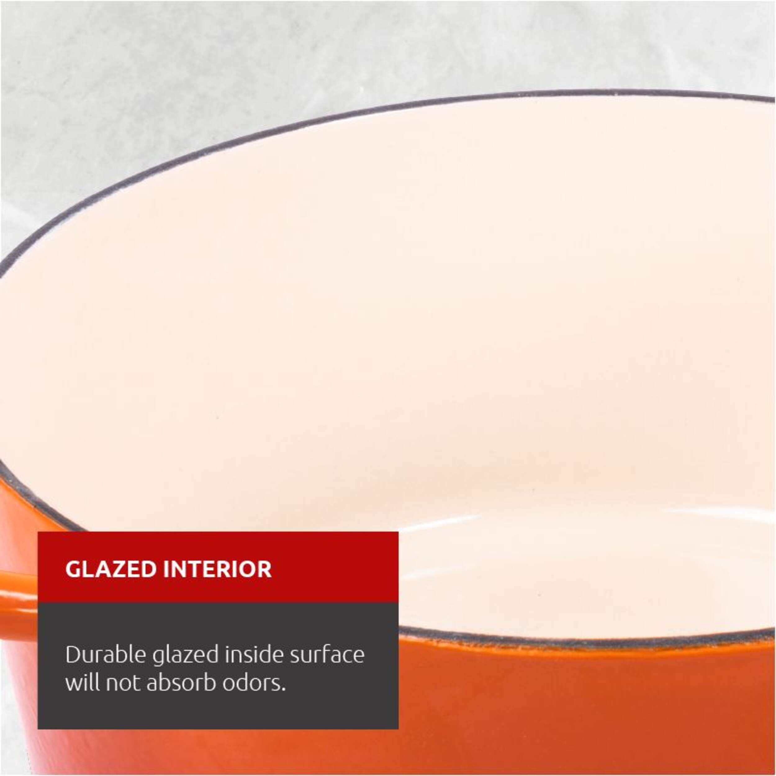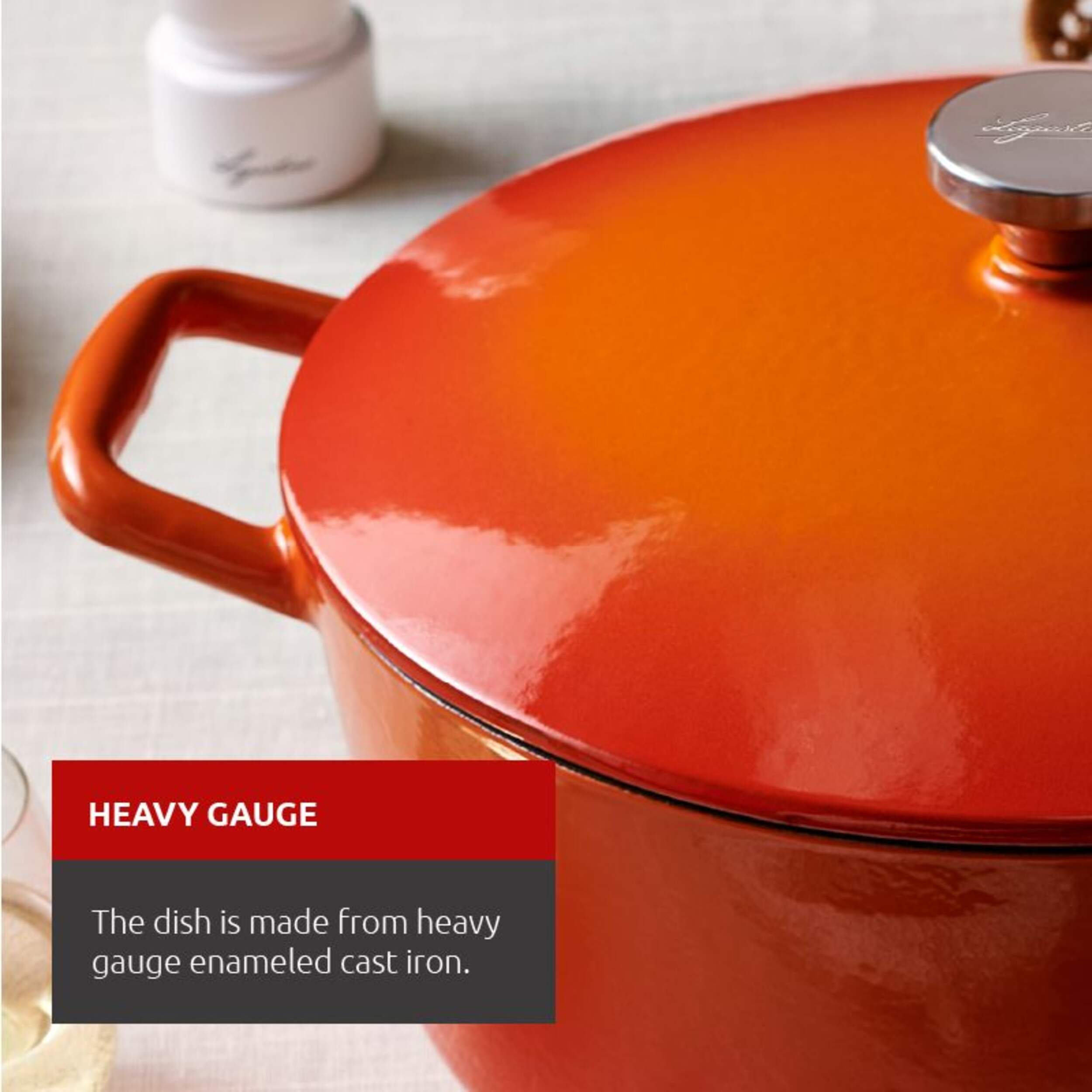 Make delicious soups, sauces, stir-frys and more with the reliable Lagostina Tuscan Collection Round Casserole Dish. Made from heavy gauge enamelled cast iron, this casserole dish can be used on the cook top, the oven and directly on your serving table. Its self-basting lid is designed for optimal steam recirculation ensuring well-cooked meals. With a large cooking capacity, this versatile casserole dish is a must-have kitchen essential.