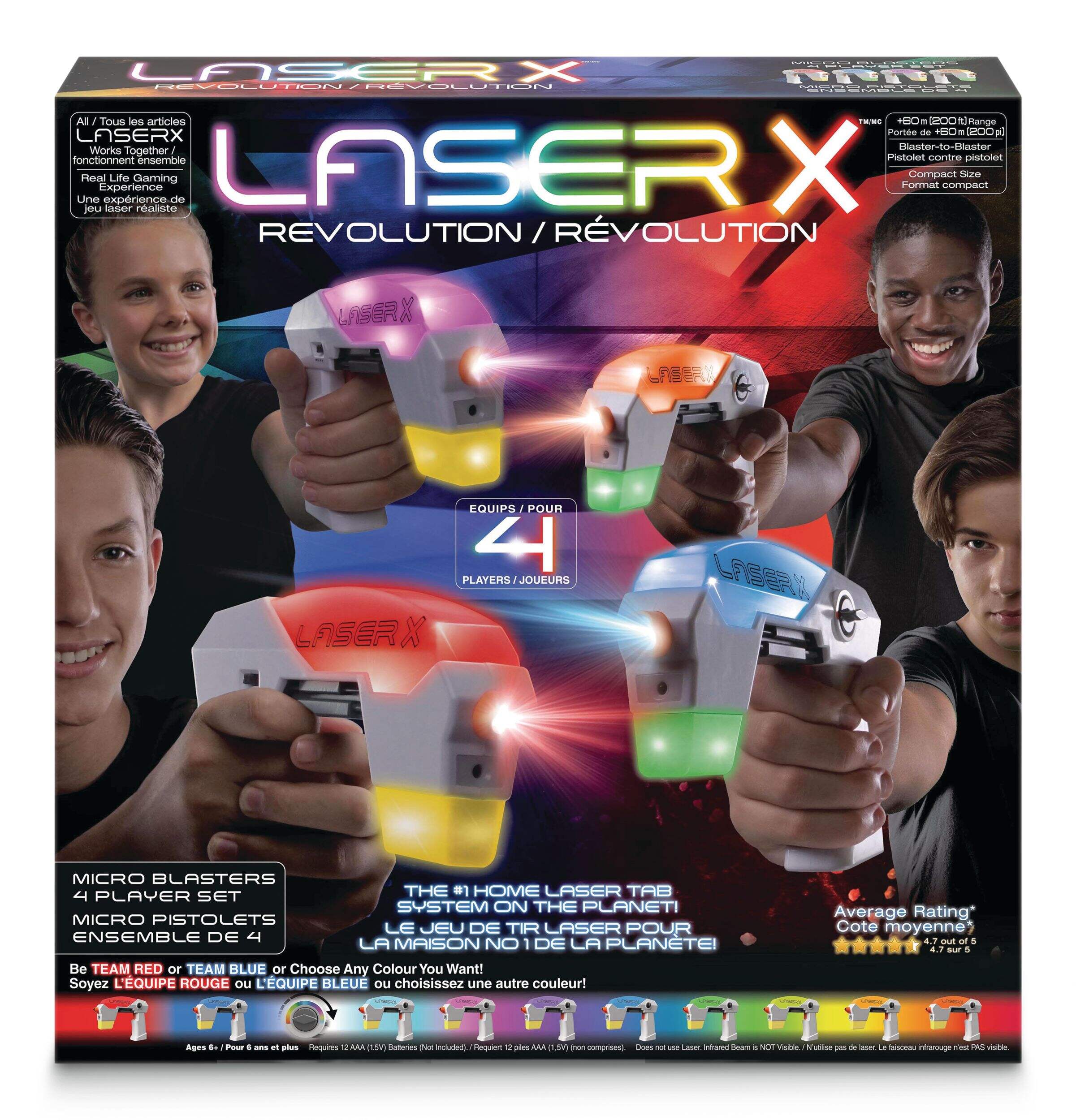 Includes 4 Laser X Evolution Blasters to equip 4 Laser X players for multi-player action.