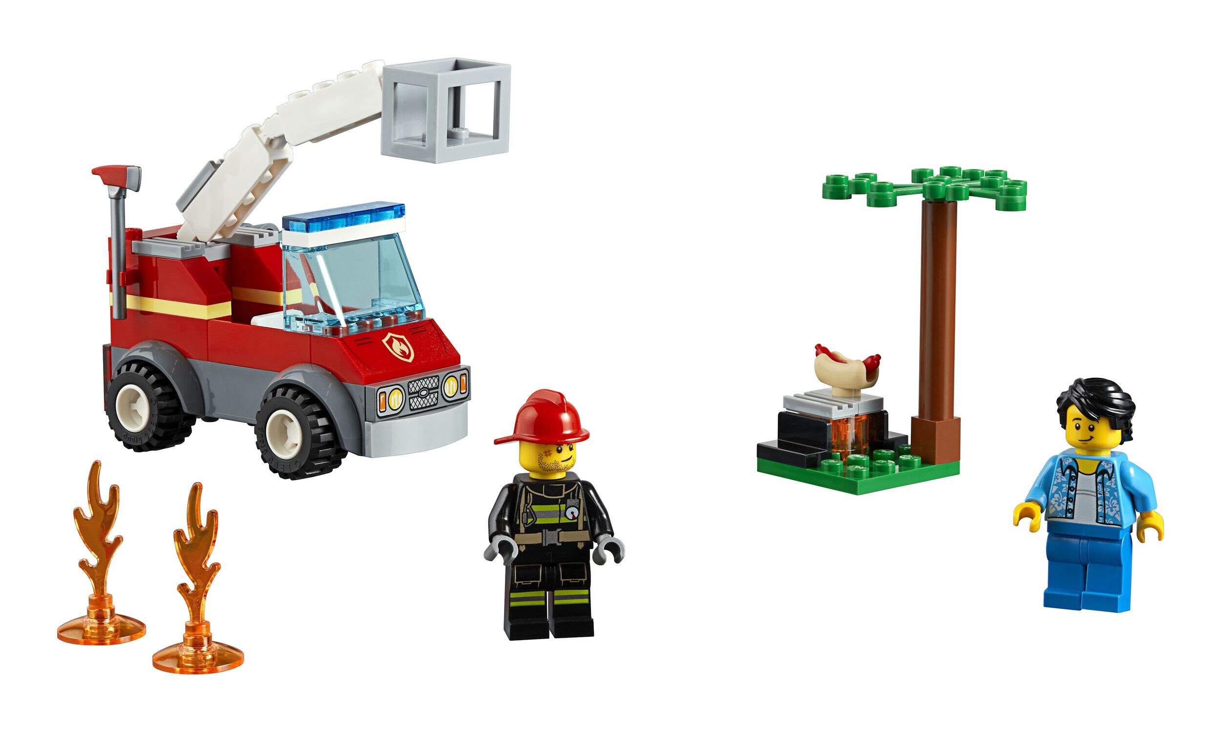 LEGO® City Barbecue Burn Out features an easy-to-build fire truck with tool storage space, extending bucket and a Starter Brick base to get your child building and playing quickly in the busy LEGO® City universe