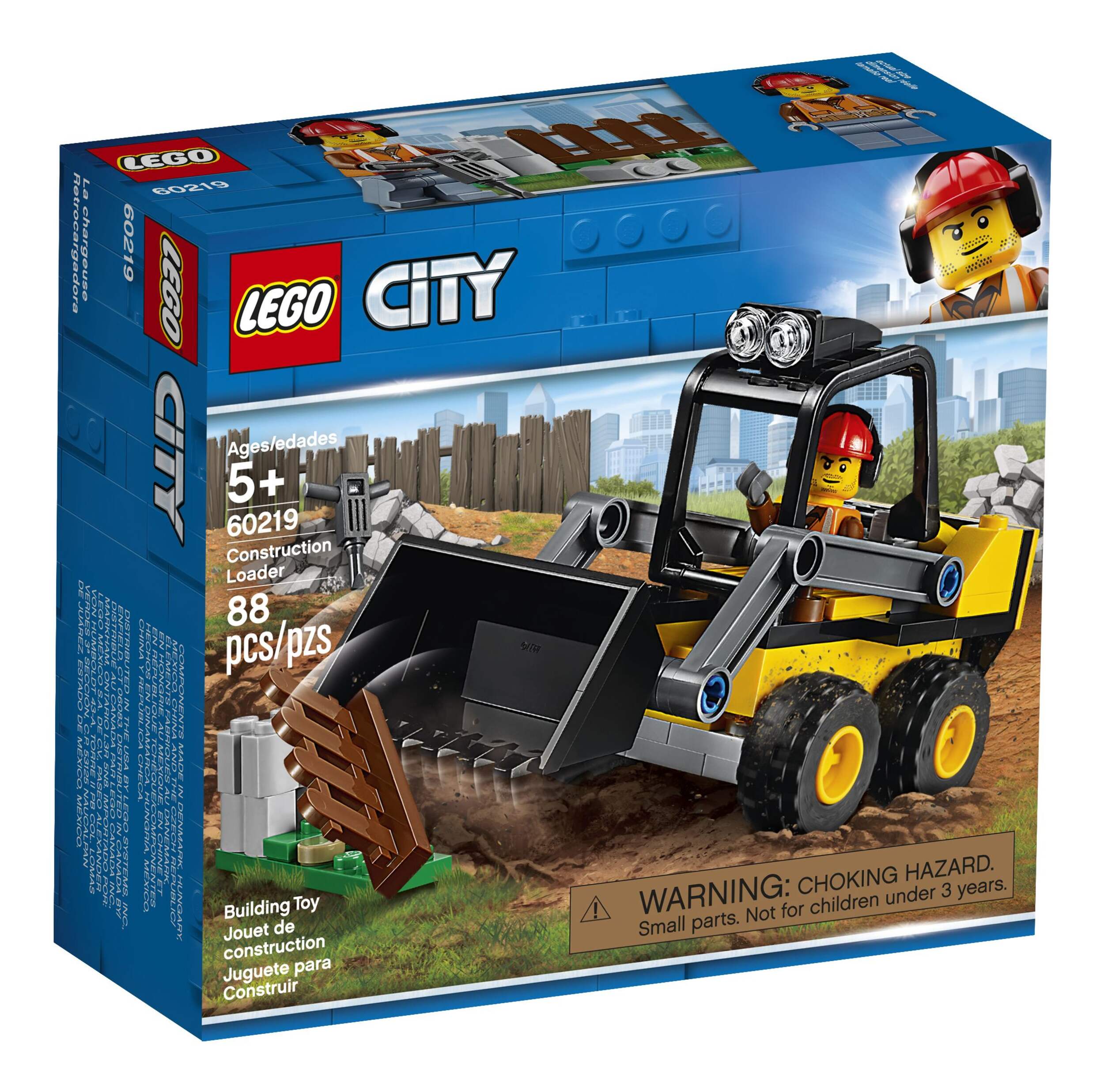 Help maintain the LEGO® City streets with the sturdy 60219 Construction Loader! This iconic construction toy set features a loader with raising front arm, tilting bucket and a roll cage, plus a small fence, jackhammer, buildable pile of concrete and a minifigure.