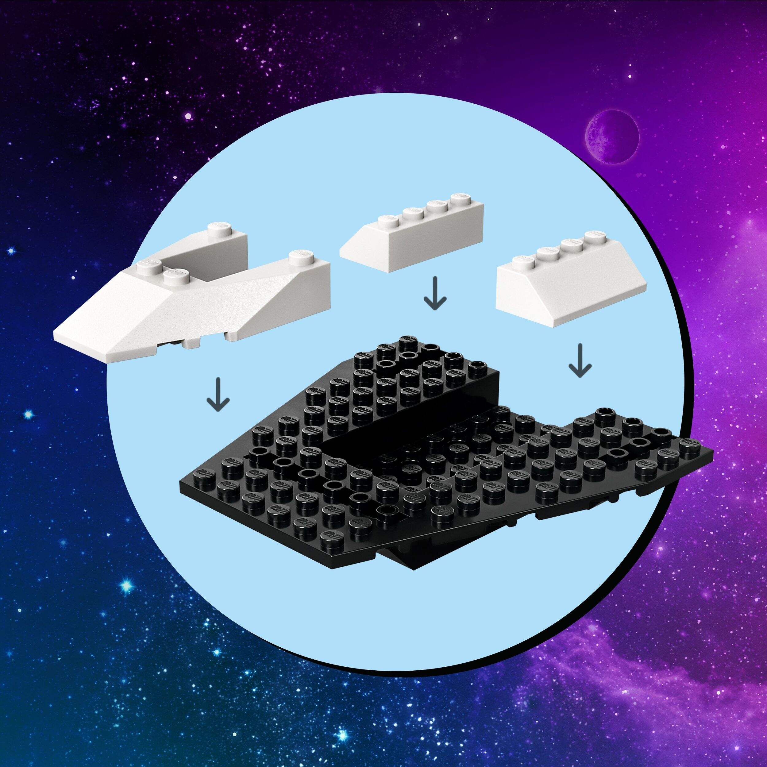 Creative play – Kids can play landing a spaceship on an asteroid, use the crane to lift the meteorite containing toy energy crystals and carry out tests at the space lab