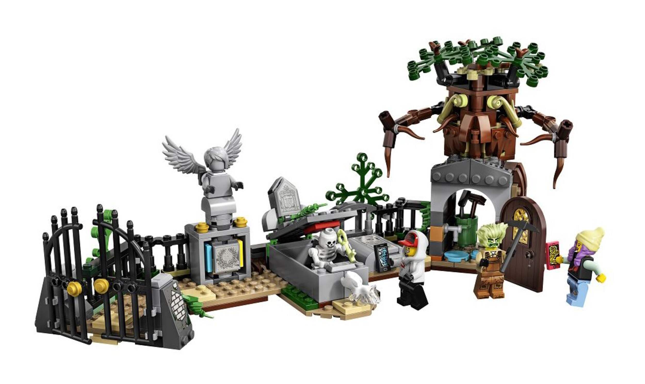 Augmented reality toy includes 4 minifigures: heroes Jack Davids and Parker L. Jackson, a skeleton figure and Mr. Branson, plus Davids’s ghost dog figure, Spencer, to pretend play the ghost-catching play in this graveyard toy and in the AR app