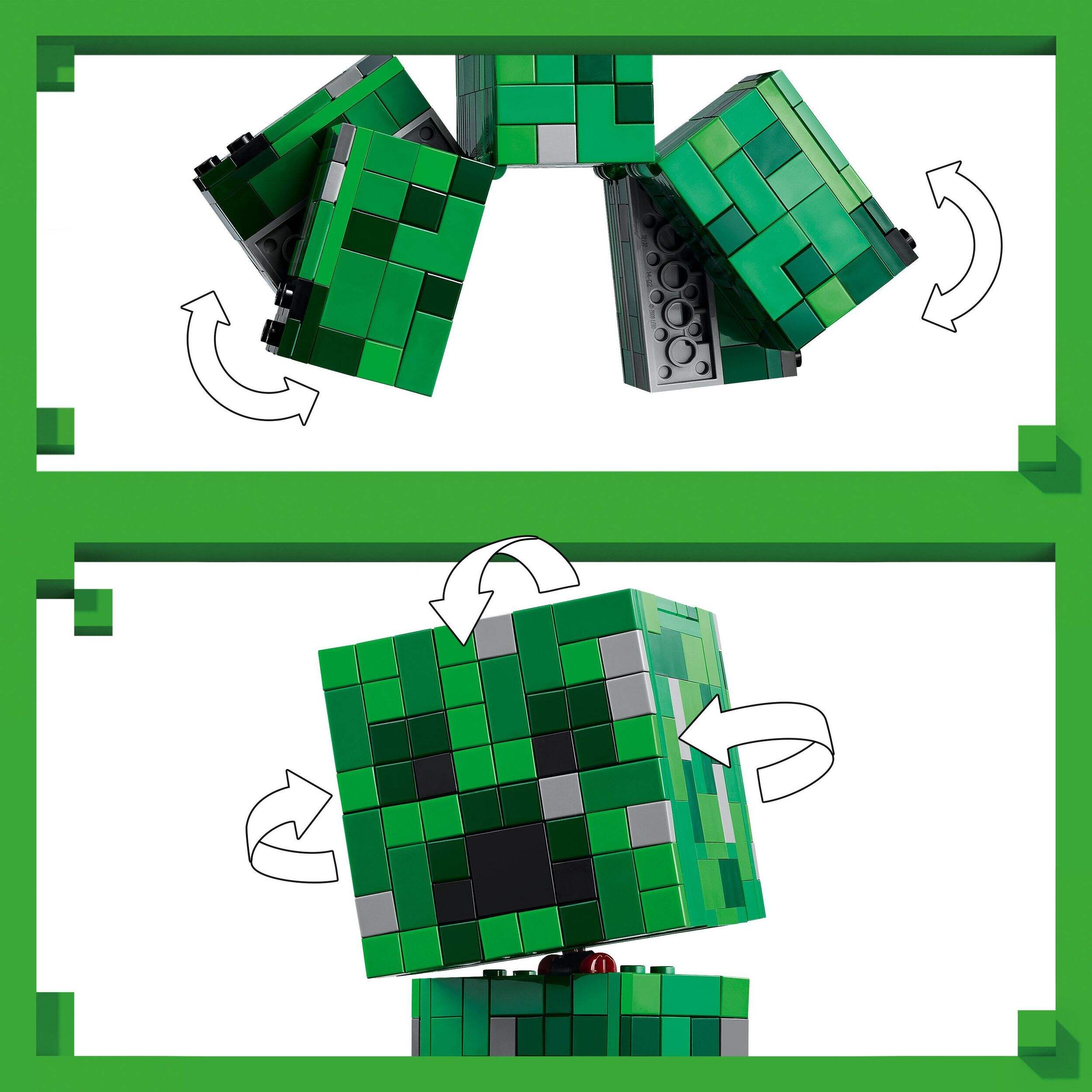 Hidden surprise inside – Builders can remove the Creeper's head to reveal a compartment that hides a first-version minifigure and TNT element