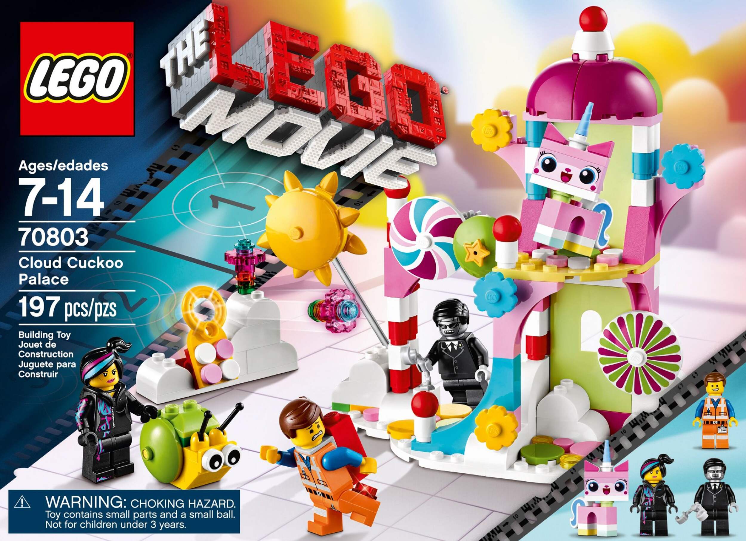 LEGO® Movie Cloud Cuckoo Palace includes 3 minifigures and accessories: Emmet, Wyldstyle and Executron, and 2 figures: Unikitty and a snail