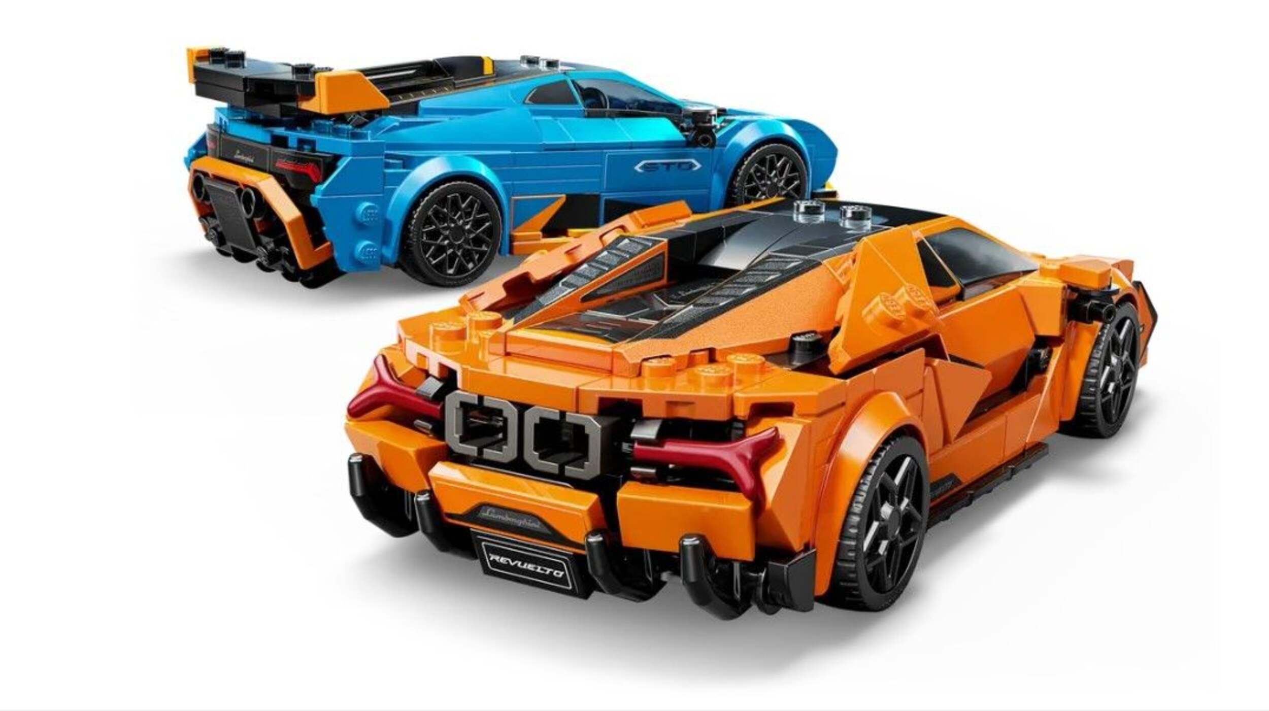 Young racing enthusiasts ages 10 years old and up can construct the LEGO Speed Champions Lamborghini Revuelto & Huracán STO (77238) building set with double the racing action