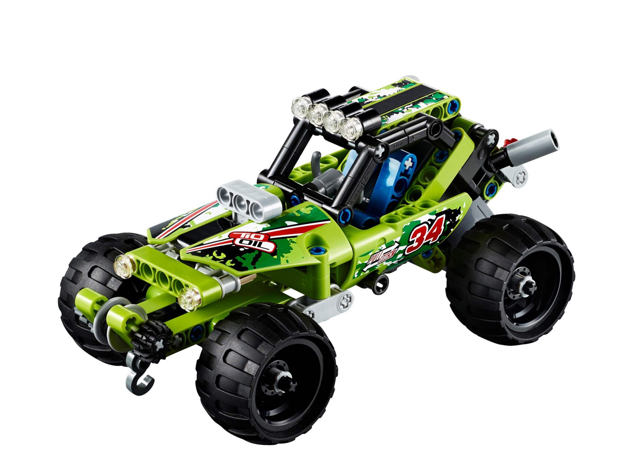 LEGO® Technic Desert Racer features a tough front winch, roll cage, chunky tires, cool styling and a pull-back motor for fast-paced fun