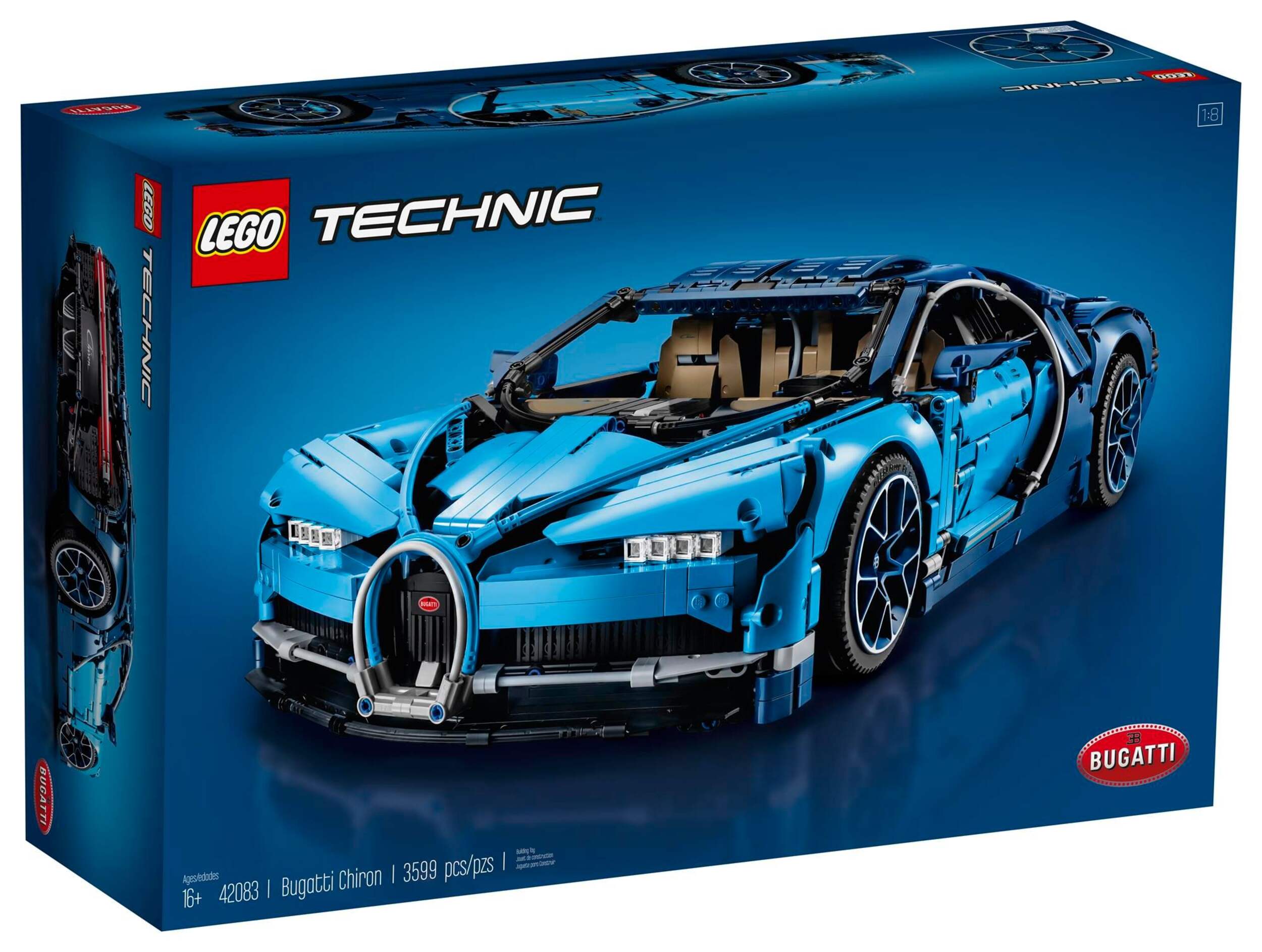 Explore engineering excellence with the LEGO® Technic™ 42083 Bugatti Chiron advanced building set. This exclusive 1:8 scale model has been developed in partnership with Bugatti Automobiles S.A.S to capture the essence of the quintessential super sports car, and comes with gleaming aerodynamic bodywork, logoed spoked rims with low-profile tires, and detailed brake discs. The accessible cockpit features a Technic 8-speed gearbox with movable paddle gearshift and a steering wheel bearing the Bugatti emblem.