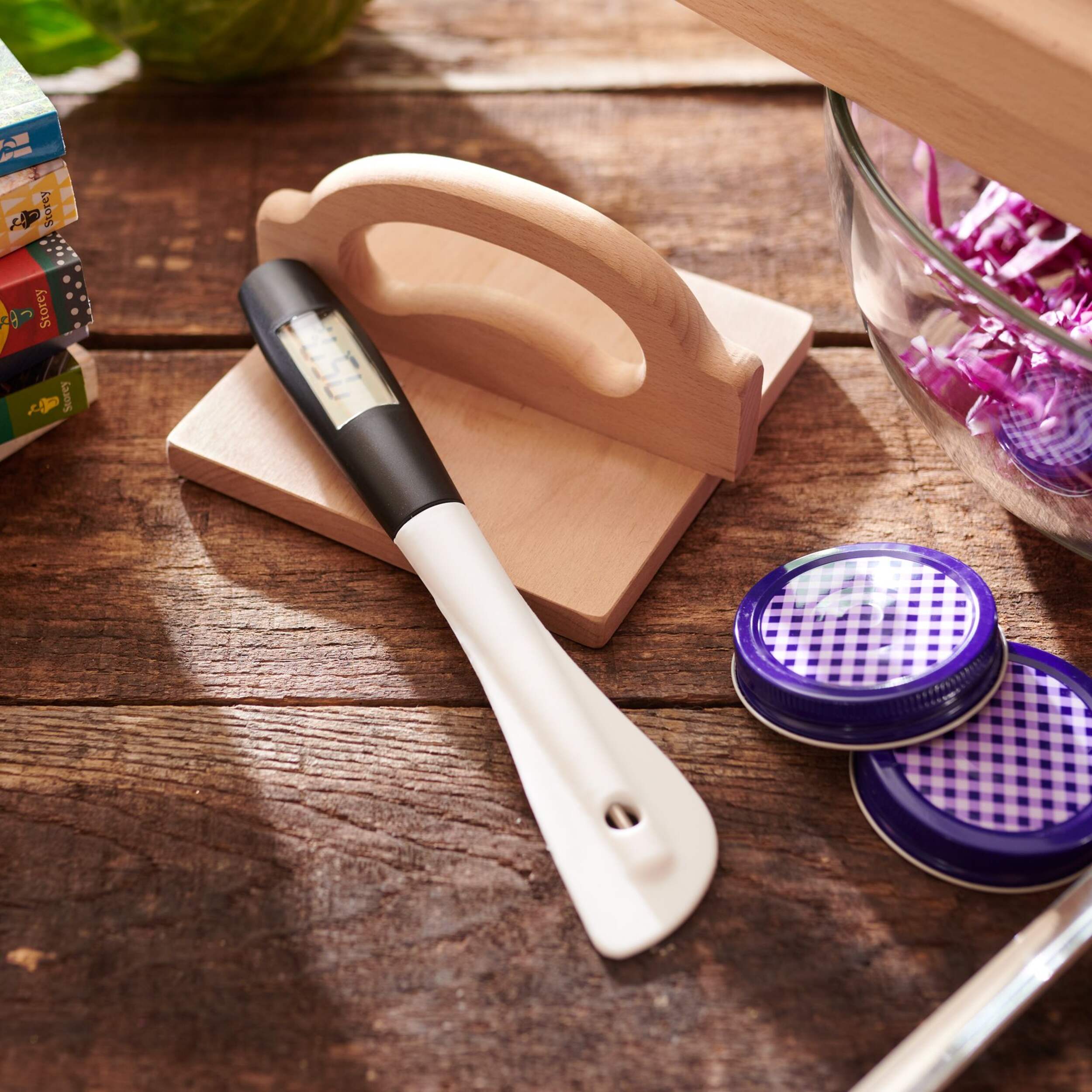 This spatula makes it easy to get the proper temperature when you're making jams, chocolate, sauces and syrups. The integrated digital thermometer measures the temperature of what you're stirring, while the spatula itself remains heat-resistant up to 446 F (230 C).
