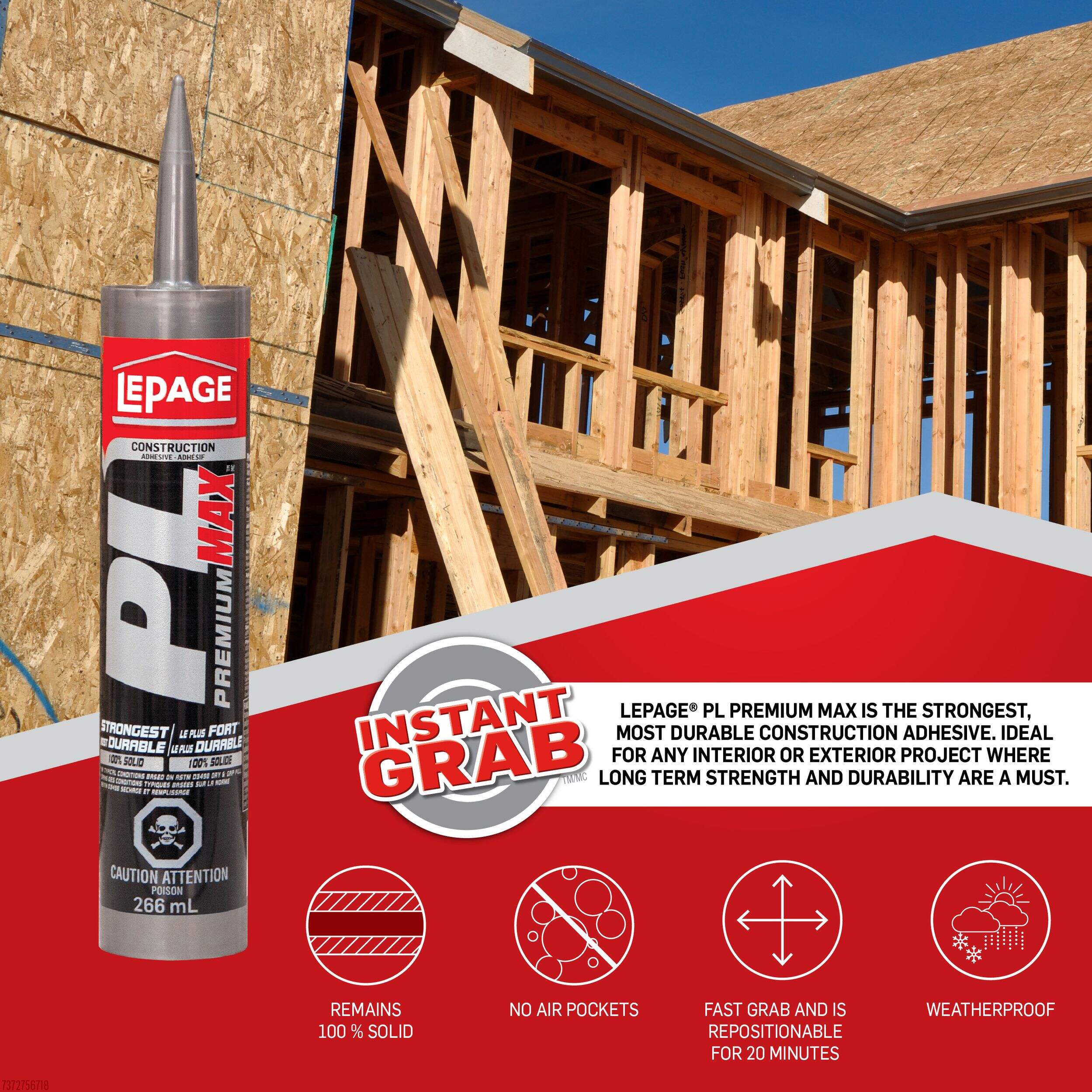LePage PL Premium Max Adhesive provides a strong, durable construction adhesion to any interior or exterior project
