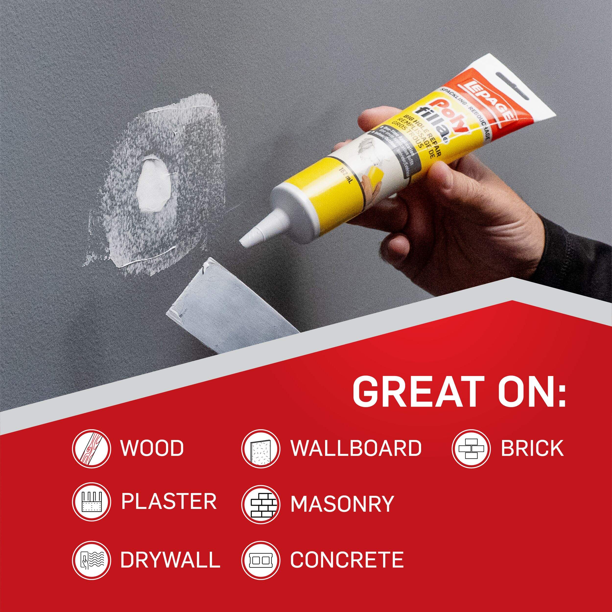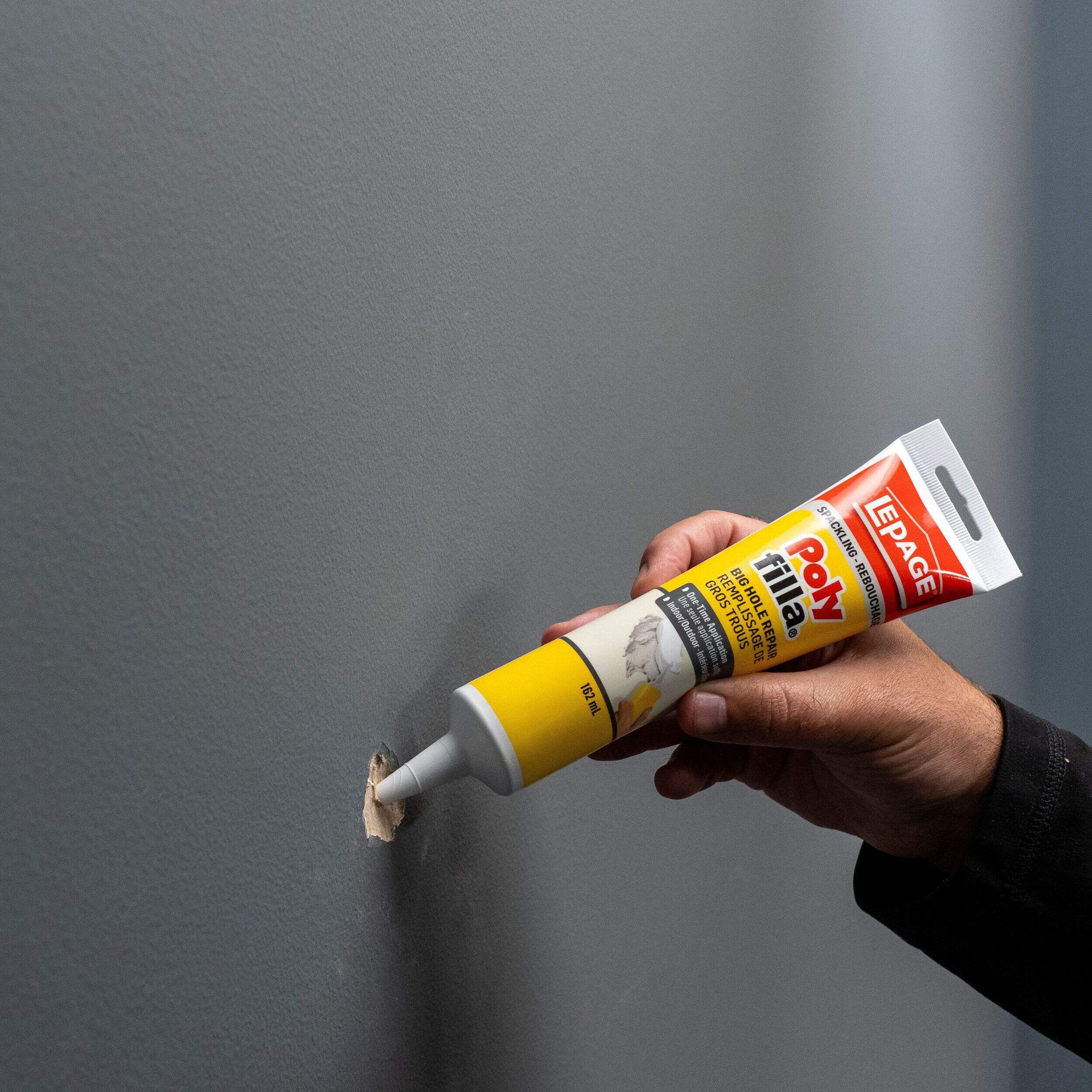 LePage Polyfilla Spackling Big Hole Repair fills large holes and cracks up to 13mm deep and is suitable for indoor and outdoor use
