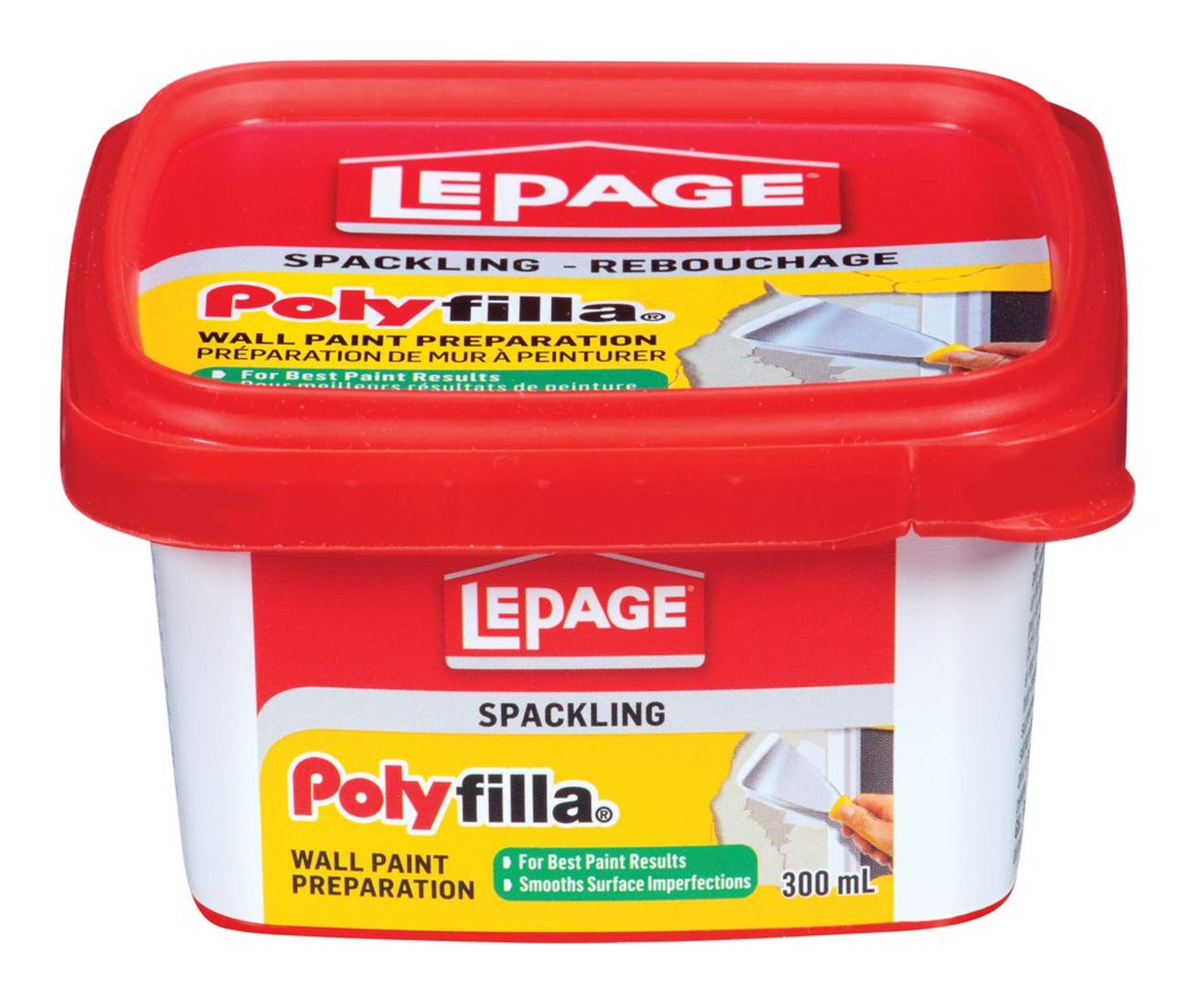 LePage Polyfilla Wall Paint Preparation Spackling is a perfect solution for minor wall imperfections. The extra fine paste spreads easily onto interior walls filling shallow holes and cracks. The creamy compound hardens fast once dry, sanding to a smooth finish that's ready for paint. Once painted, Polyfilla blends in seamlessly so imperfections vanish. The non-sagging, low odor formula is easy to apply requiring no mixing. It cleans up with water before drying, reducing the need for harsh cleaners.