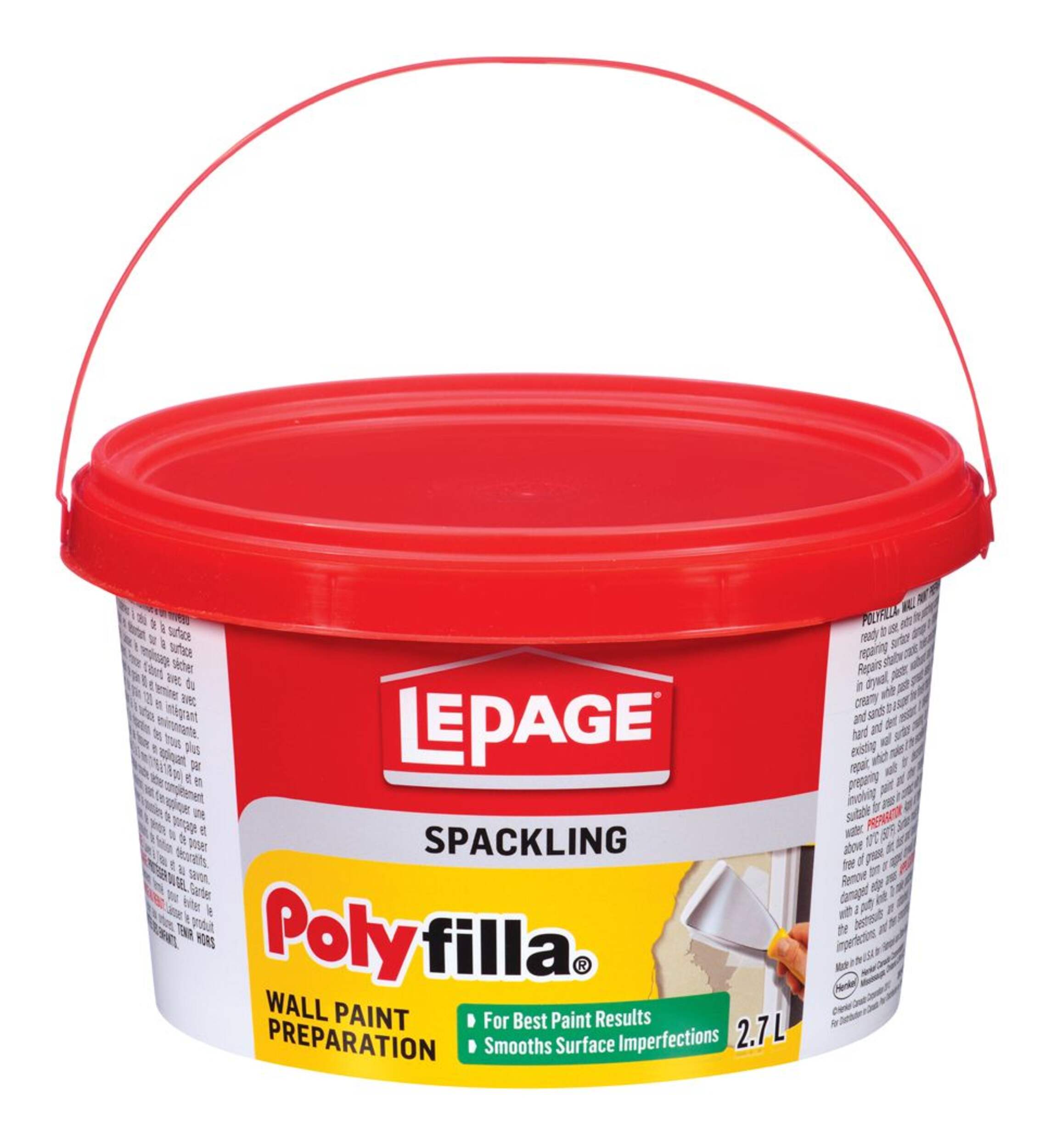 LePage Polyfilla Wall Paint Preparation for Interior Walls is formulated for repairing cracks, shallow holes, and other imperfections on the wall surface