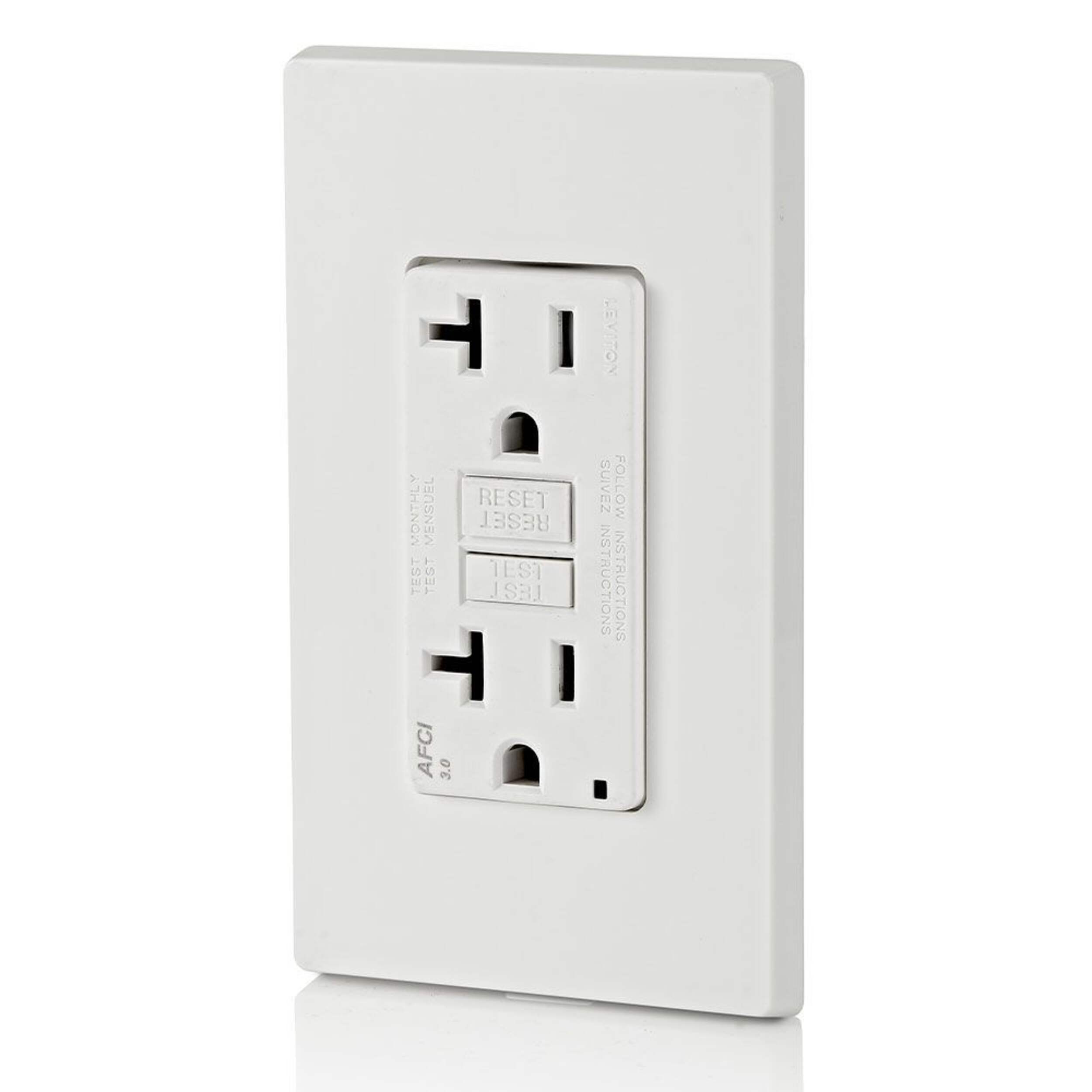The Leviton 20A Tamper Resistant AFCI Receptacle, White offers advanced protection against electrical fires caused by arc-faults. Designed to detect and interrupt potentially hazardous arc-faults, this receptacle ensures safety in your home or office. Its tamper-resistant feature prevents foreign objects from being inserted, enhancing child safety. The sleek white design fits seamlessly into any decor, while the durable construction guarantees reliable performance. Ideal for new circuits, modifications, or replacements, this AFCI receptacle combines safety, functionality, and style.