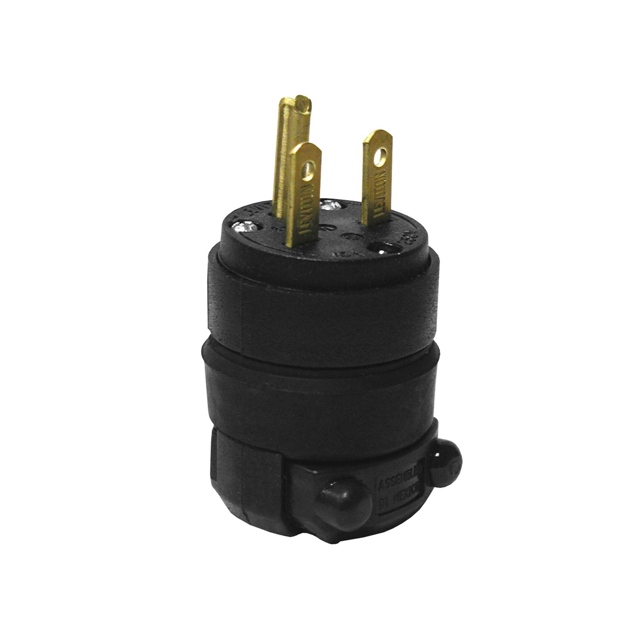 NEMA 6 plug ensures a safe and grounded connection every time. The black rubber construction is non-conductive but built to last, with vinyl inserts that securely clamp wires in place. Three grounding prongs discharge excess power to keep your electronics safe from surges. Leviton's attention to detail and use of quality materials means this plug delivers reliable performance you can count on for years, providing a secure, grounded connection for your 15 amp, 250 volt applications.