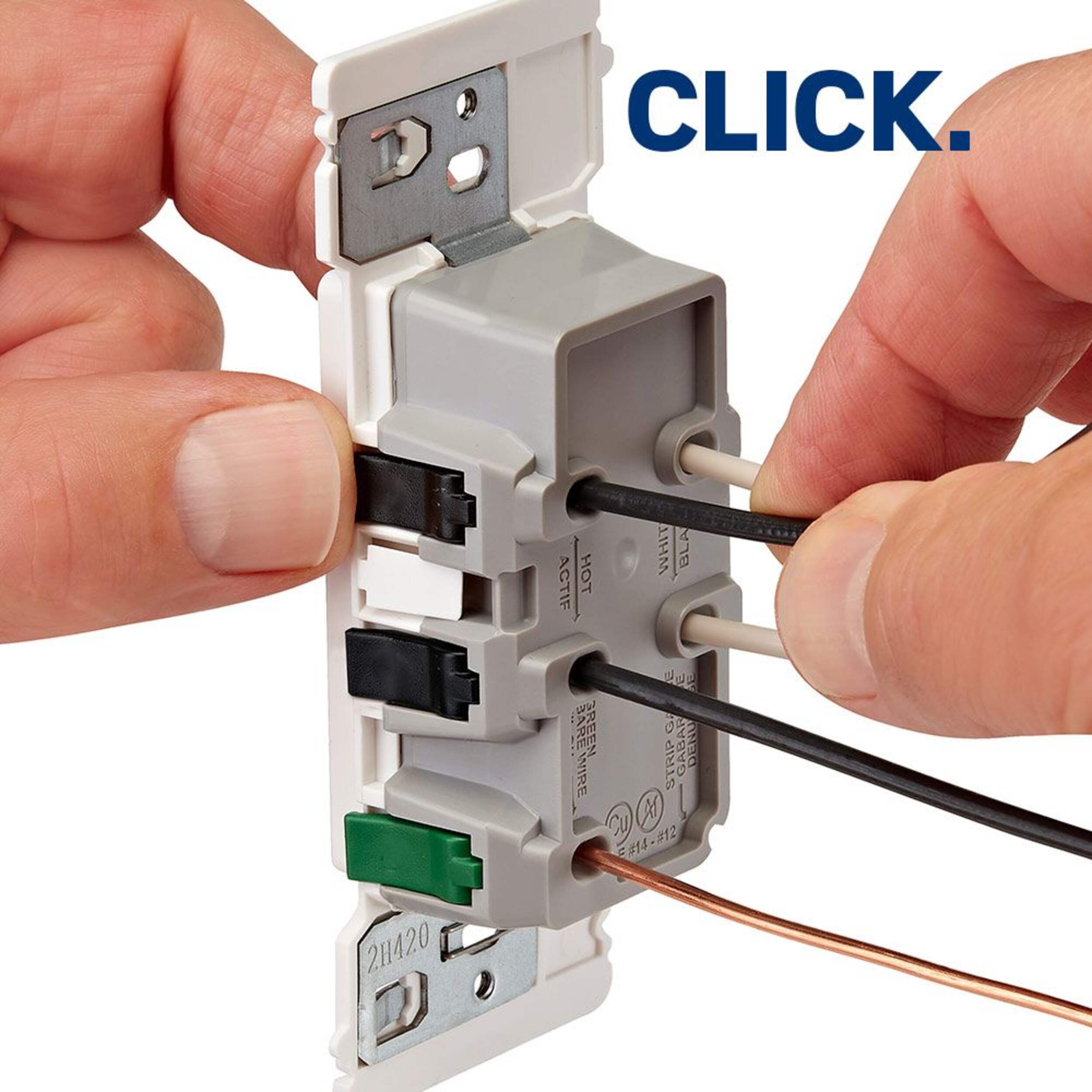 The Leviton Decora Edge 15A 125V Receptacle is faster, safer, and easier to install with its professionally engineered Push, Click, Done functionality