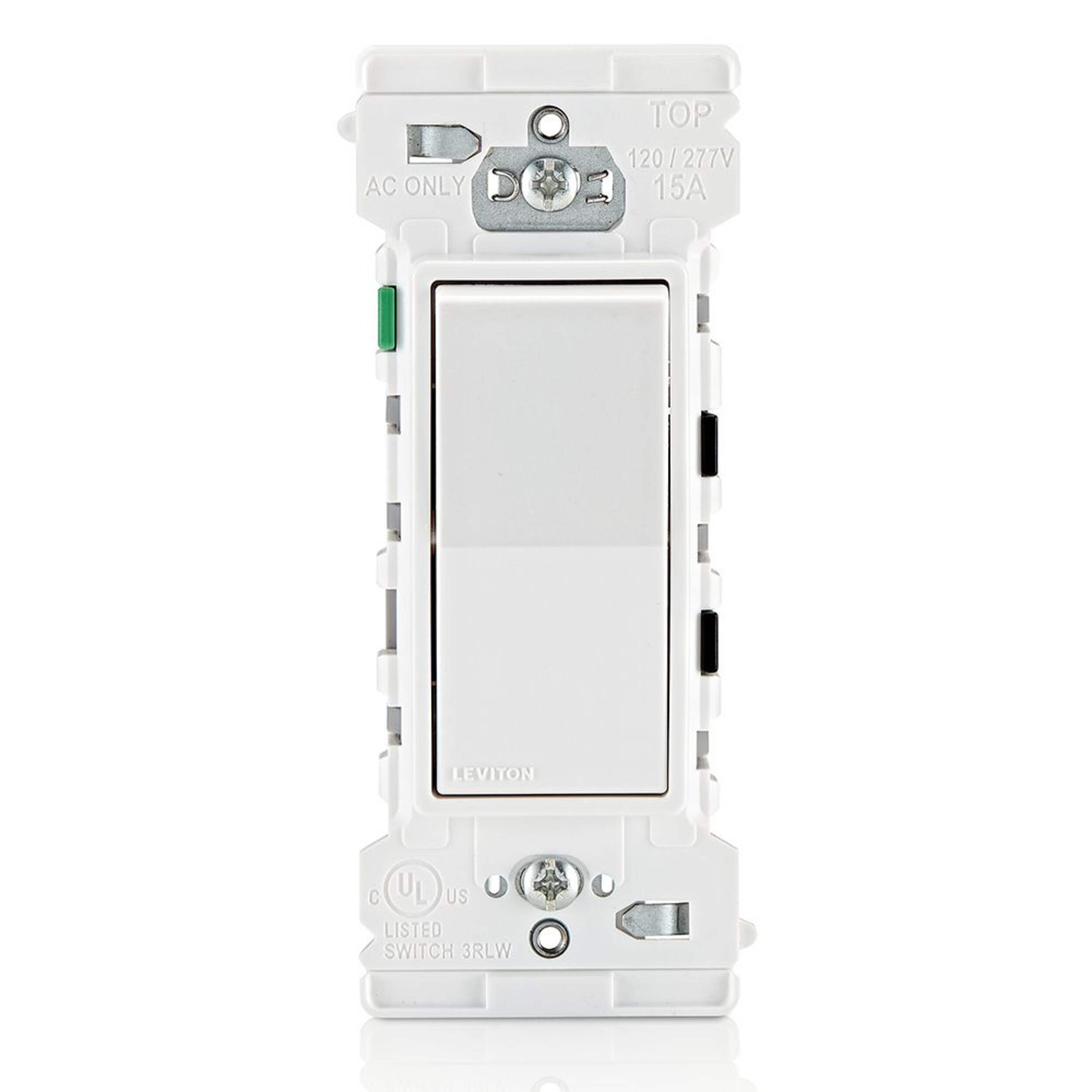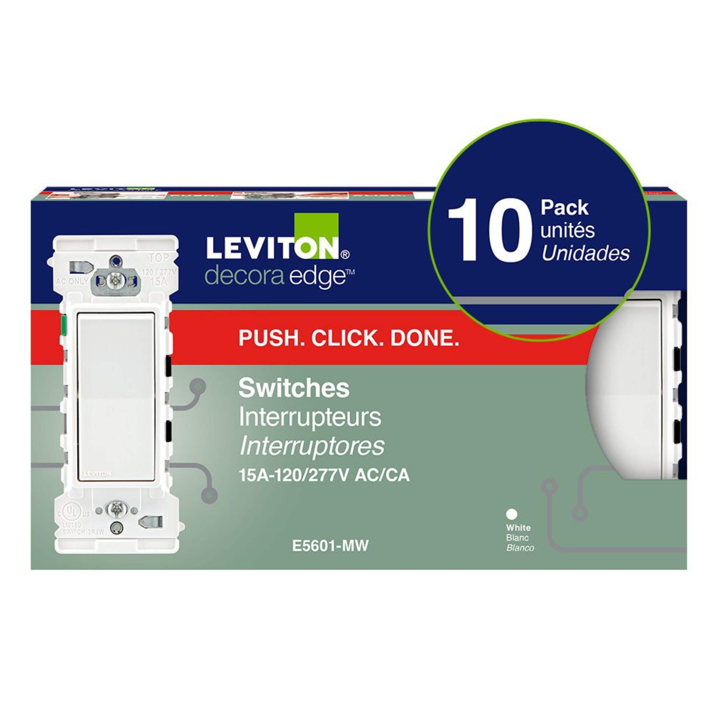 The Leviton Decora Edge 15A Single Pole Switch 10-Pack contains switches that are safer and easier to install thanks to Push, Click, Done functionality