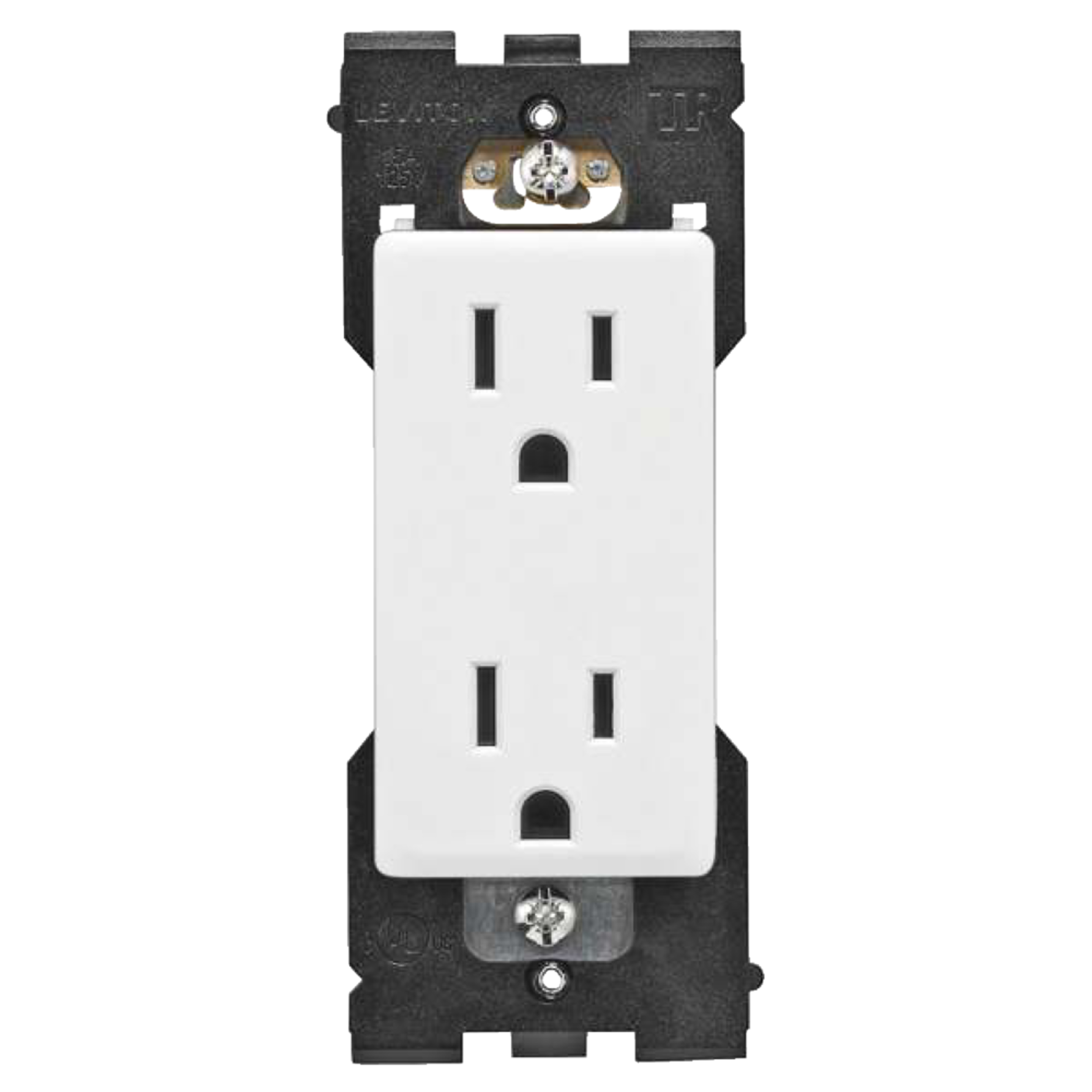 Leviton's Renu receptacle helps keep your home up-to-code and safe. Installing is easy thanks to self-aligning features and the self-grounding wire means one less step for you. The white finish blends in with any color scheme while the tamper-resistant design helps deter curious fingers. Simply snap on a wall plate, sold separately, and you're set for years of dependable performance.