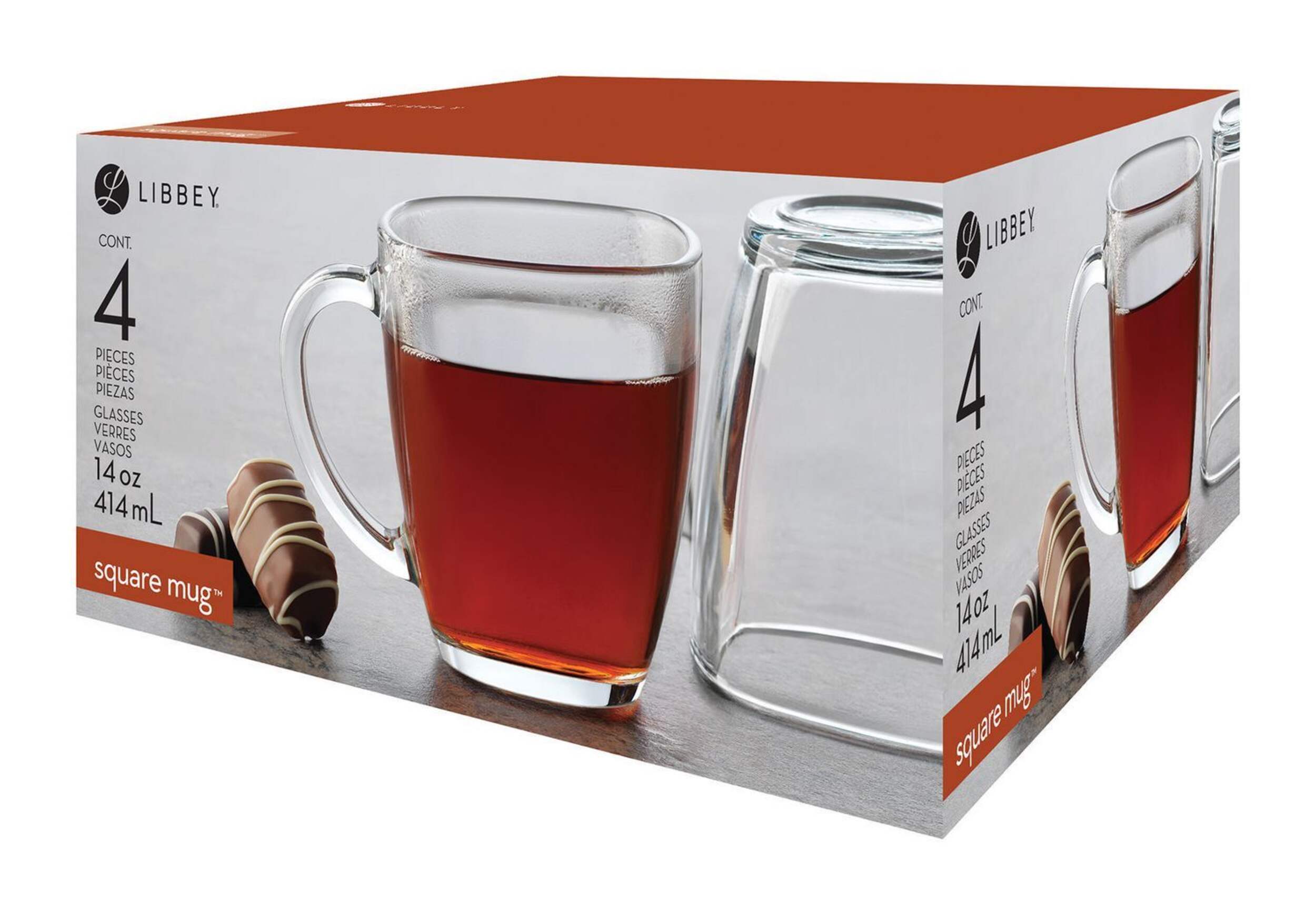 The perfect addition to any kitchen, this set of 4 contemporary square glass mugs from Libbey upgrades tired mismatched coffee mug collections. Whether enjoying a daily cup of coffee, tea or cocoa, these minimalist and modern glasses are the ideal vessel for your morning beverage. The sturdy square shape lends a coordinated yet simple look that works alone or paired with square dinnerware. Simply rinse and pop in the dishwasher for easy cleaning.