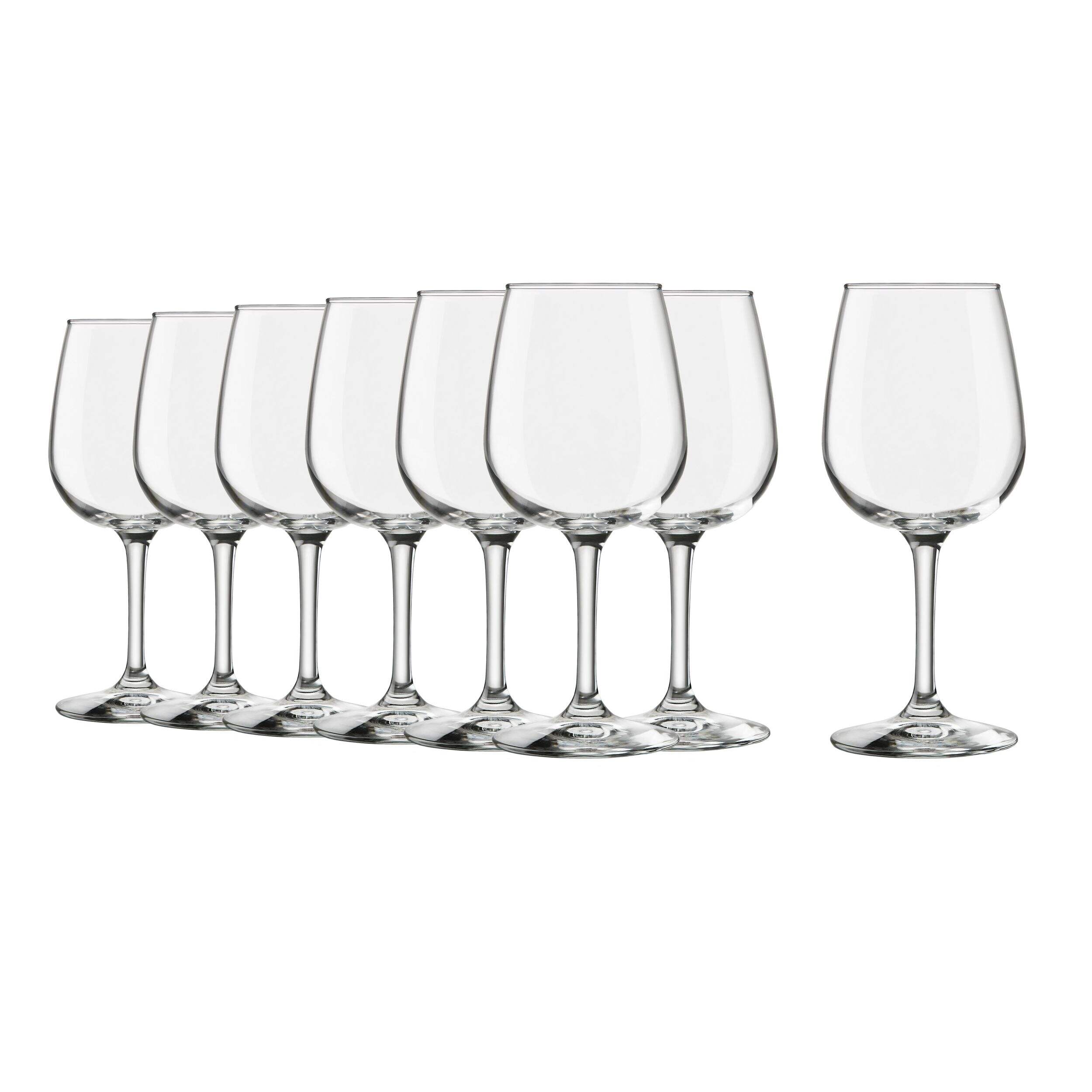 Entertain in style with the Libbey Wine Glass Set. Comprised of eight all-purpose glasses, ideal for serving both red and white wine. With a generous capacity of 12.75 oz (377 mL), these glasses are suitable for entertaining or daily use. The Libbey set, defined by its simple elegance, ensures easy cleaning as all pieces are dishwasher safe. A practical addition to any kitchen or bar, this glassware set offers a versatile solution for your wine-serving needs.