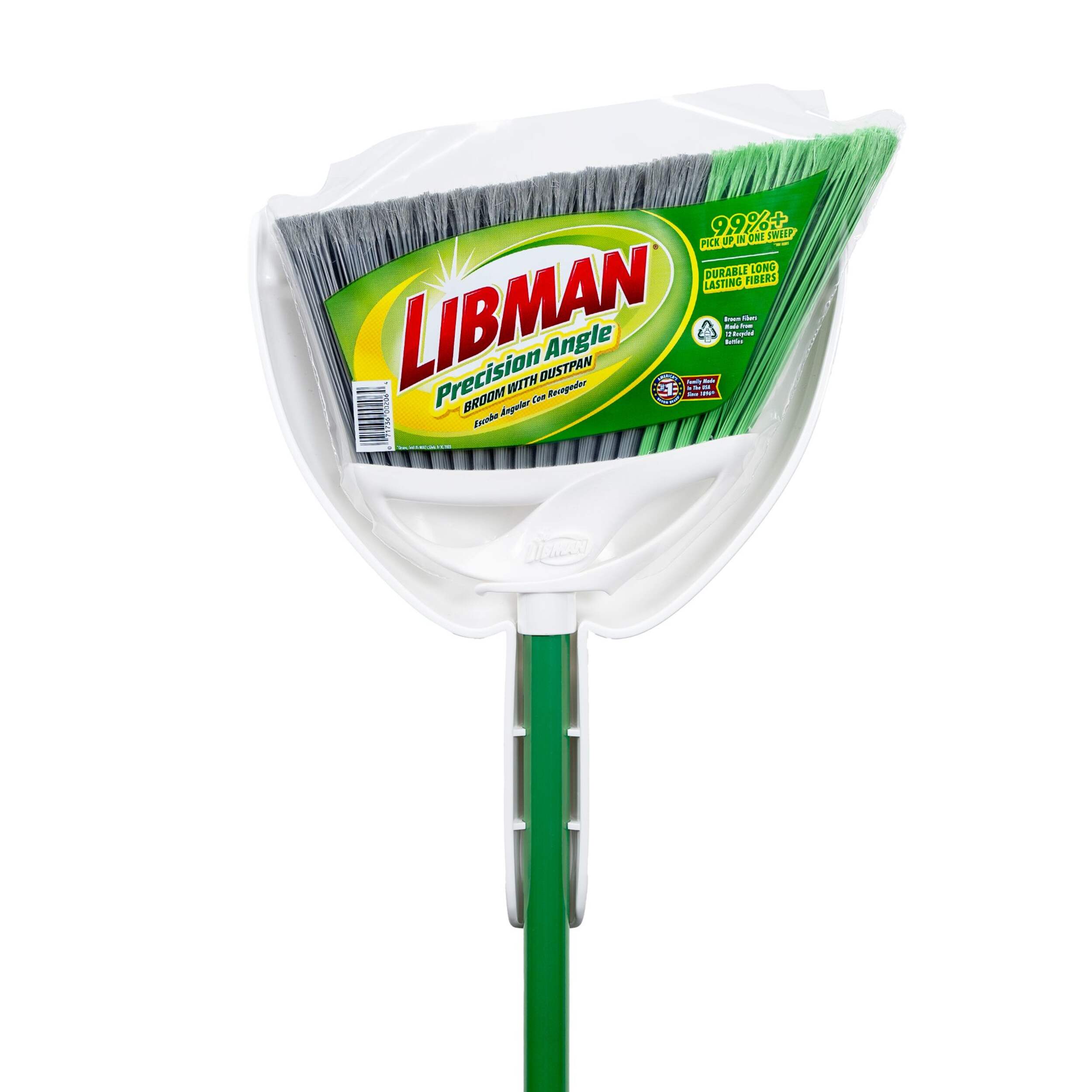 The Libman Precision Angle Broom with dustpan helps make clean-up a snap. Featuring 5-inch long fibers made from recycled PET bottles, these fibers are precisely cut to remove 99% of dust, dirt, and hairs in one sweep. The dustpan features a molded lip to seal against your floor to ensure the dirt winds up in the dustpan and not under it. Best of all, the guaranteed quality construction of the Precision Angle Broom and dustpan make them the ideal one-two punch for sweeping up inside or out.