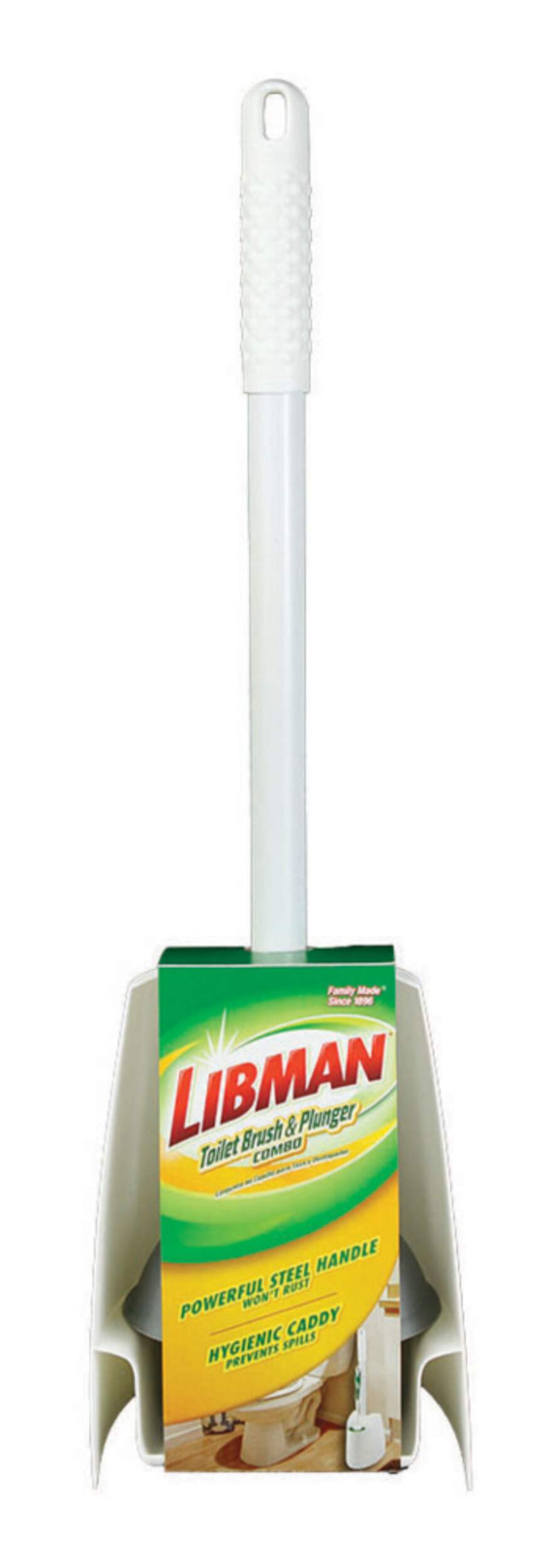 The Libman Toilet Bowl Brush & Steel Plunger Combo features a non-slip brush handle grip for easy handling. The oversized rubber plunger provides the best seal, allowing for more effective plunging. It comes with a sleek and practical caddy to keep your bathroom tools organized and ready for use. This convenient combo contains essential tools for maintaining a clean and hygienic bathroom in your home.