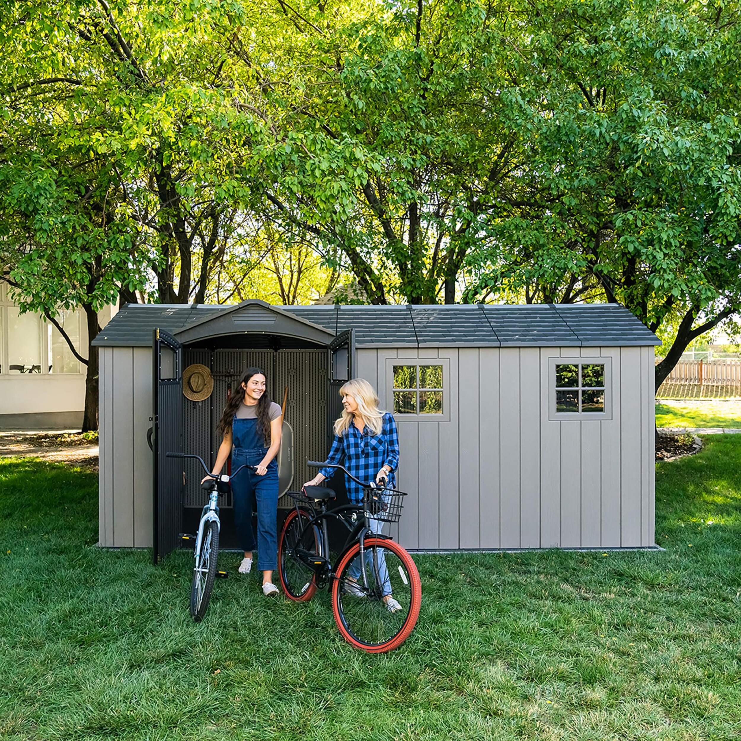 Transform your outdoor space with the Lifetime Side Entry Garden Shed. This spacious shed for garden provides ample room for all your storage needs, featuring a stylish woodgrain finish that mimics the natural beauty of wood without the hassle of maintenance. Built to endure harsh weather conditions, this durable outdoor shed is a reliable and practical addition to any backyard.
